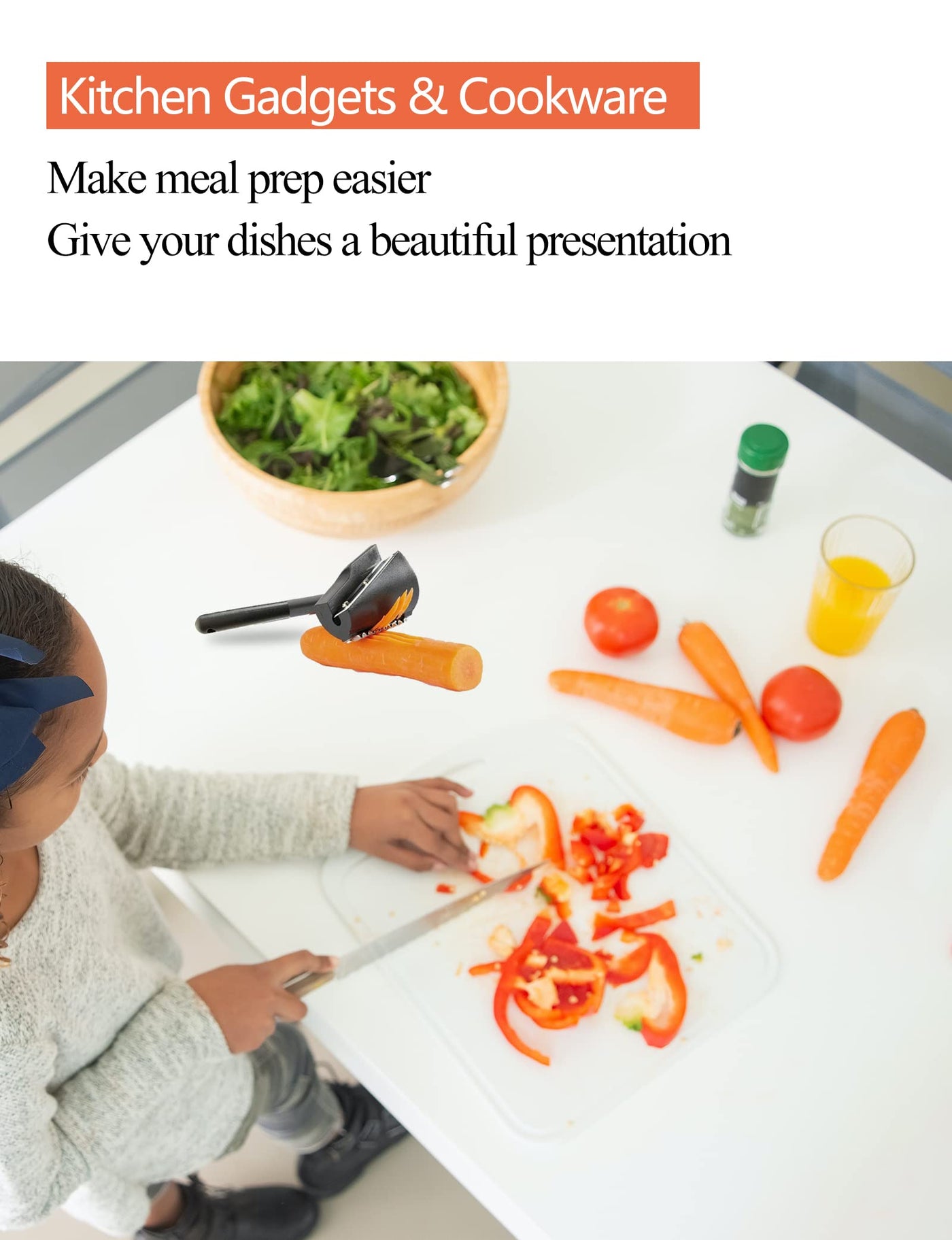 • Q: Is this tool suitable for beginners in the kitchen? A: Yes, the Carrot Curler and Peeler is user-friendly, making it suitable for both beginners and experienced cooks who want to enhance their food presentation.