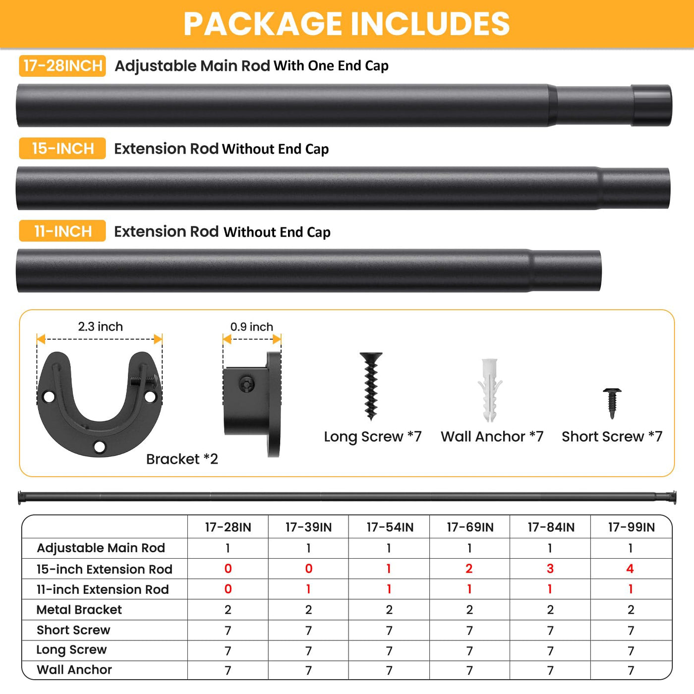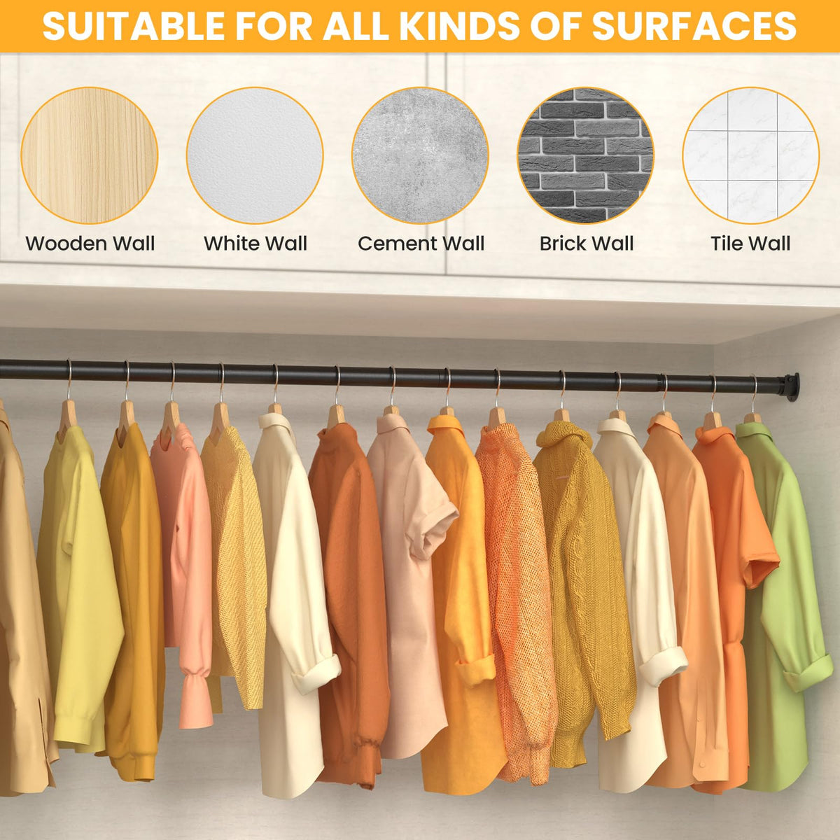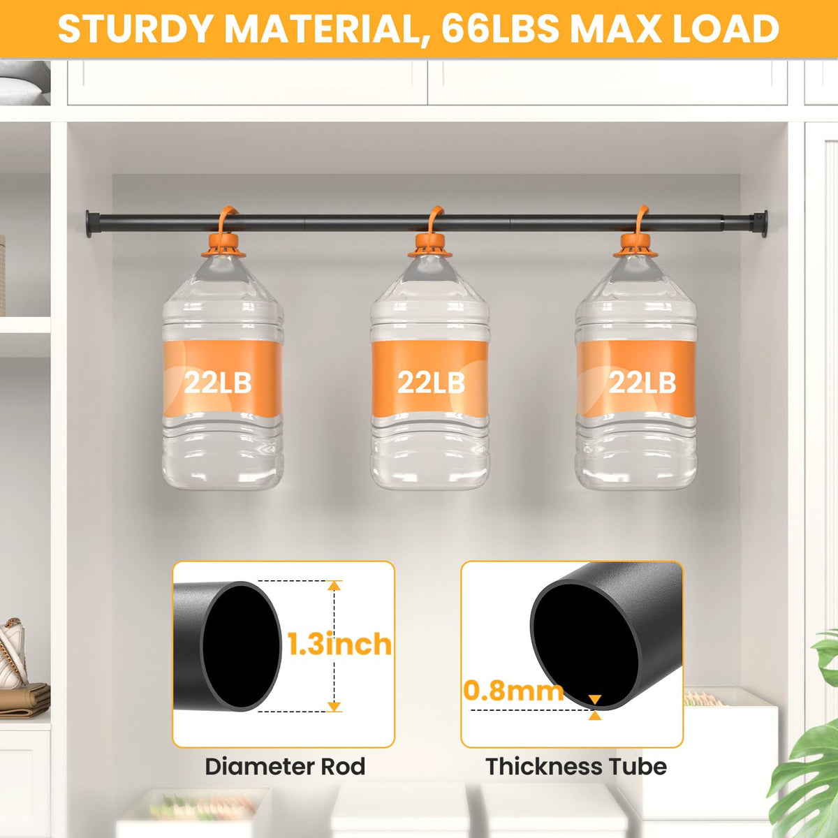 Closet Rods for Hanging Clothes, 17-84 Inch No-Cut Stepless Adjustable Closet Rod, 1.3 Inch Heavy Duty Metal Closet Hanging Rod