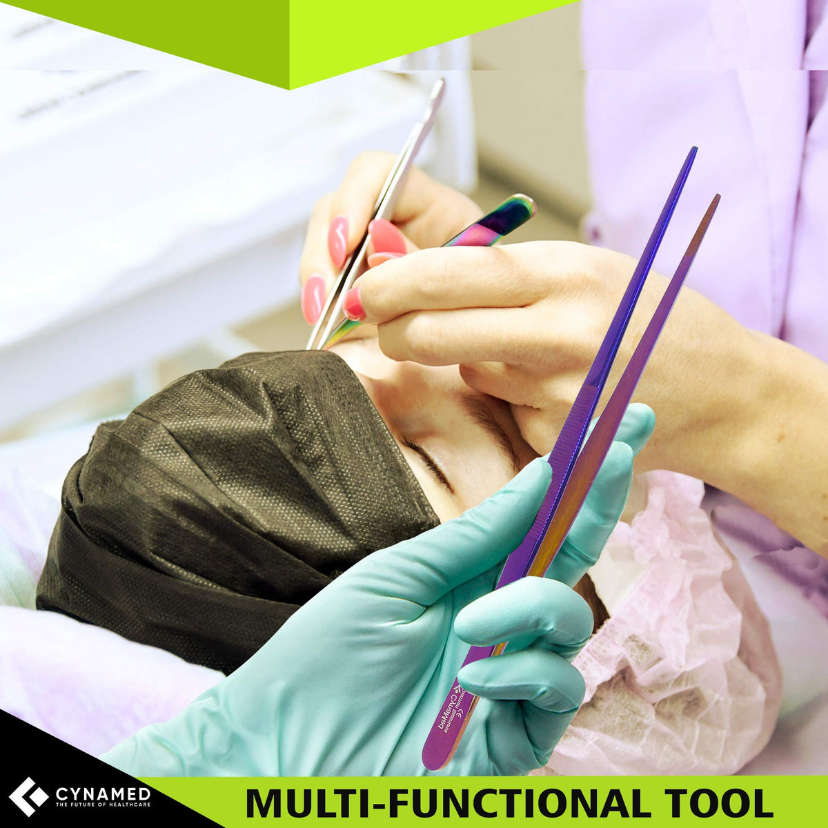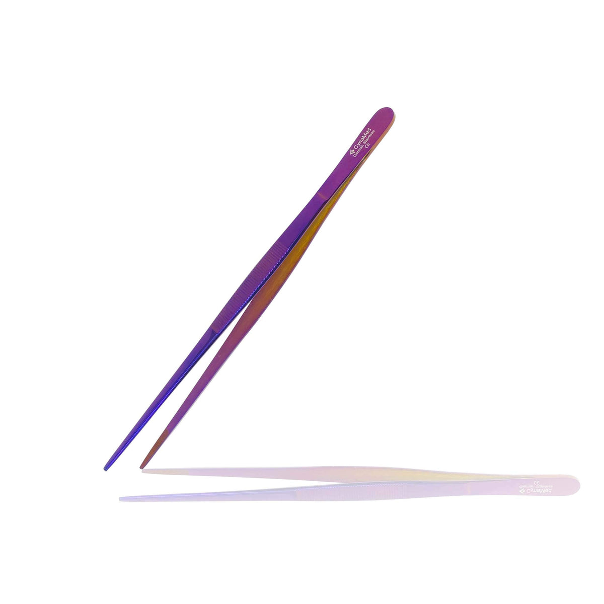 Cynamed 10 Kitchen Premium Tongs Tweezers Stainless Steel, Long With Precision Serrated Tips (Purple)