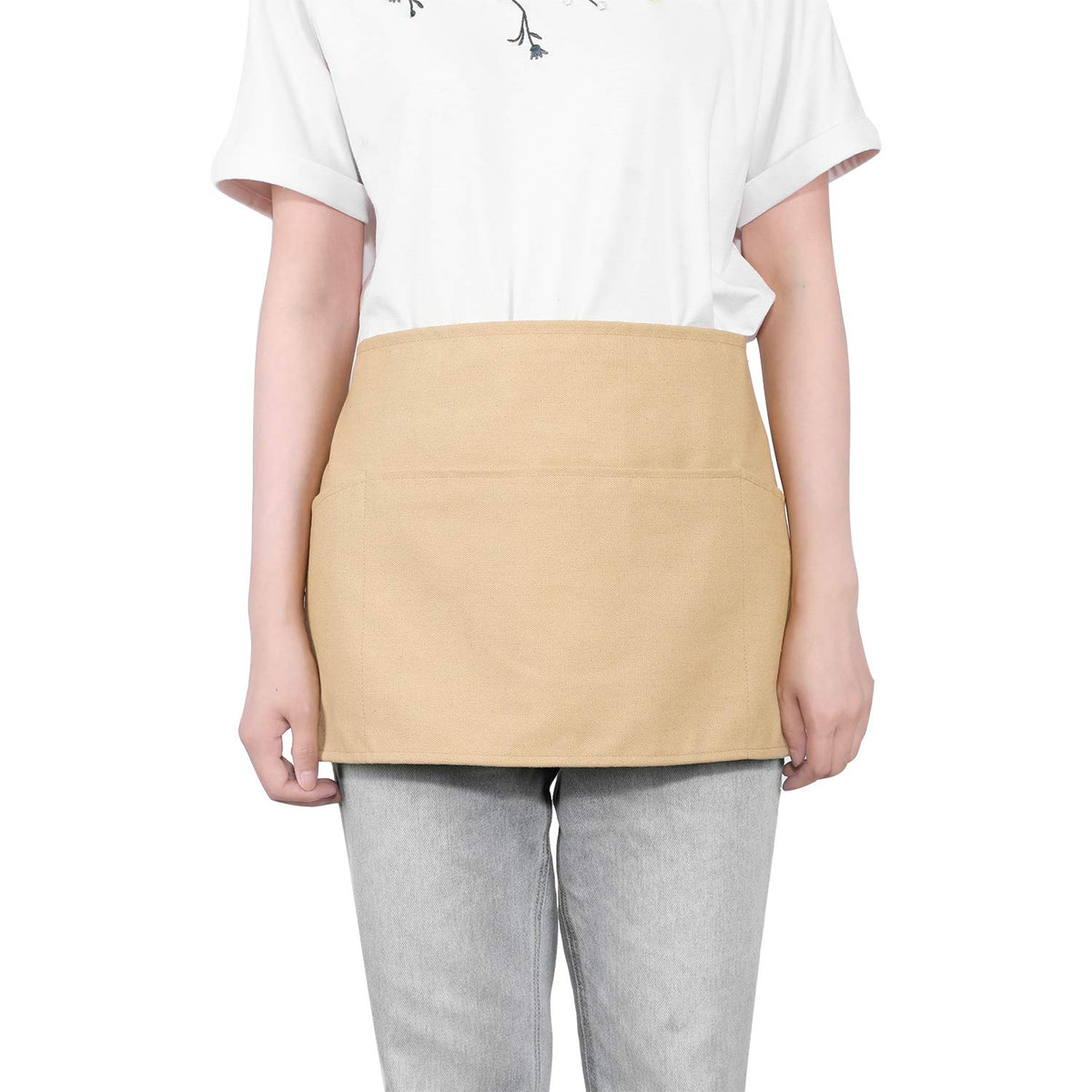 Gnegni 3 Pockets Waist Apron-Waitress Waiter Server Apron Short Half Uniform Apron