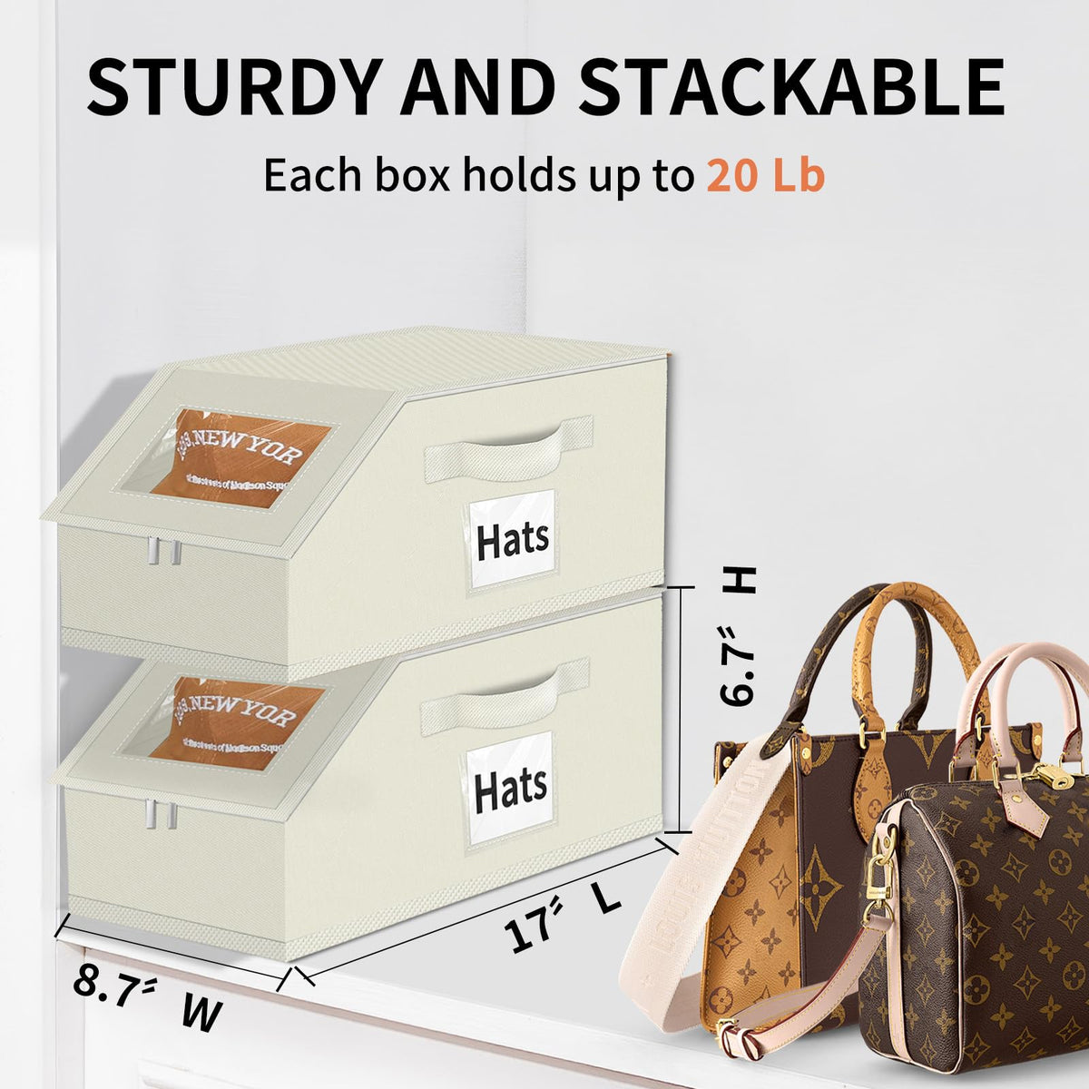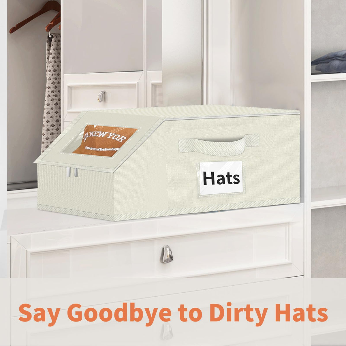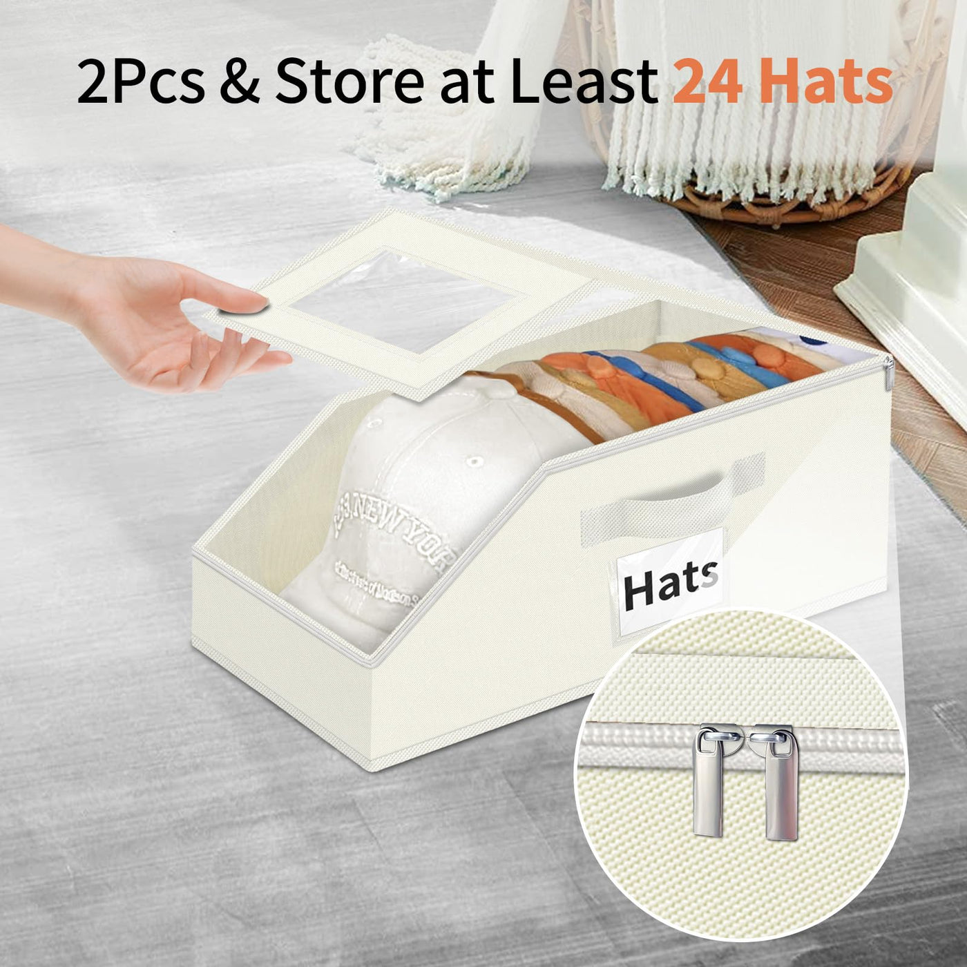 Hat Organizer for Baseball Caps - 2PCS Stackable Storage with Clear Window Lid, Flip-Top Access, Space-Saving Hat Box for Closet