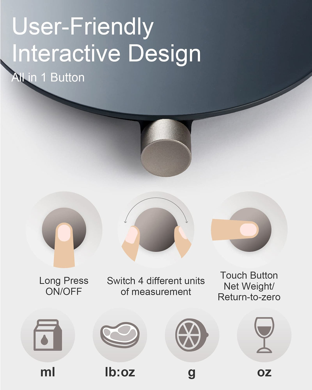 - Q: Does the HOTO Smart Food Scale have a user-friendly design? A: Yes, it features an all-in-one button design that allows users to switch between measurement units easily.
