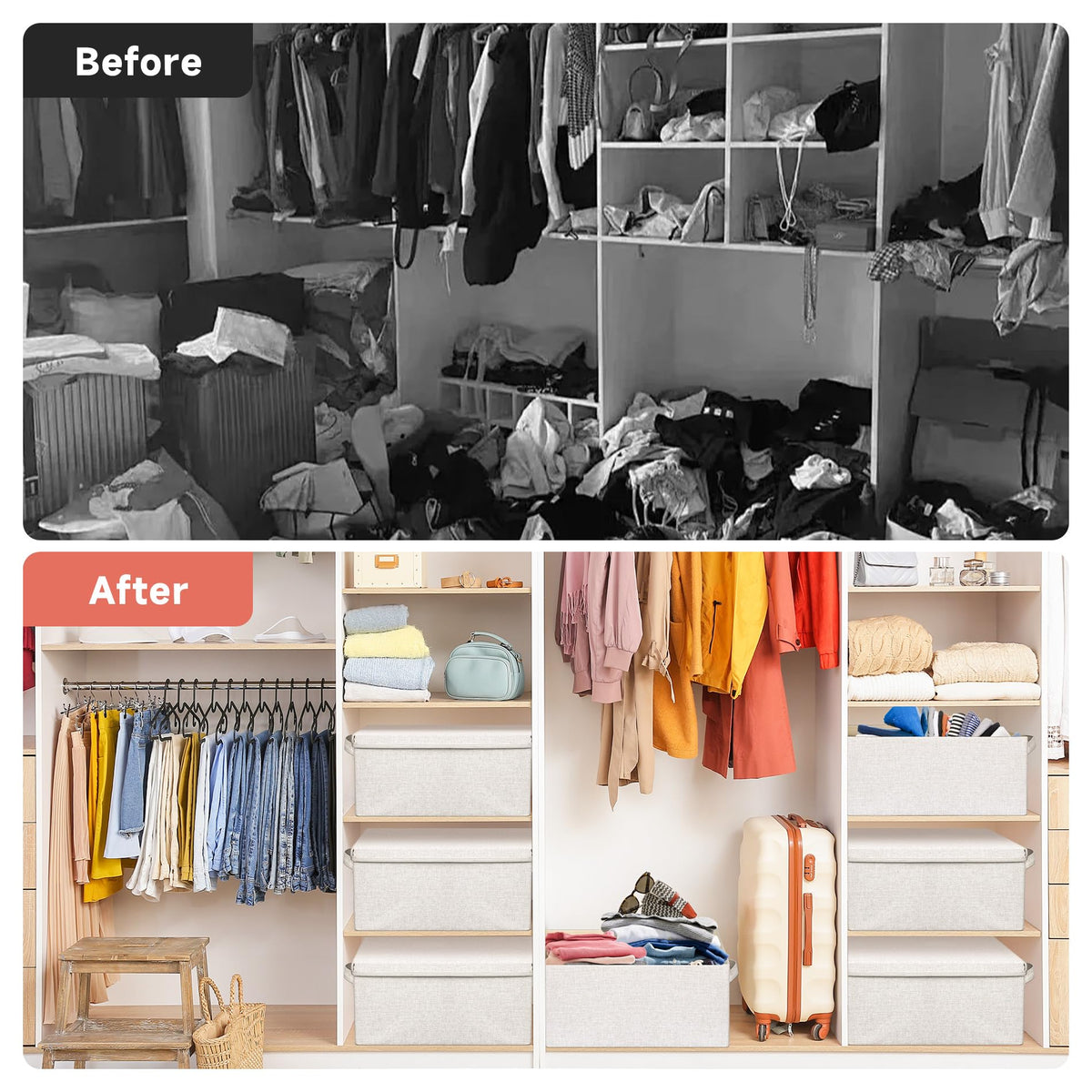 ?[Extra Large Capacity] This extra large decorative storage bins with lids measures about 23.4 x 15.74 x 11.8, extra large capacity is almost 75.2 Quarts/ 18.8 Gallons / 71 Liters. With a removable double open lid, the cotton linen storage box with lid is easier to keep clothes organized and find what youre looking for.