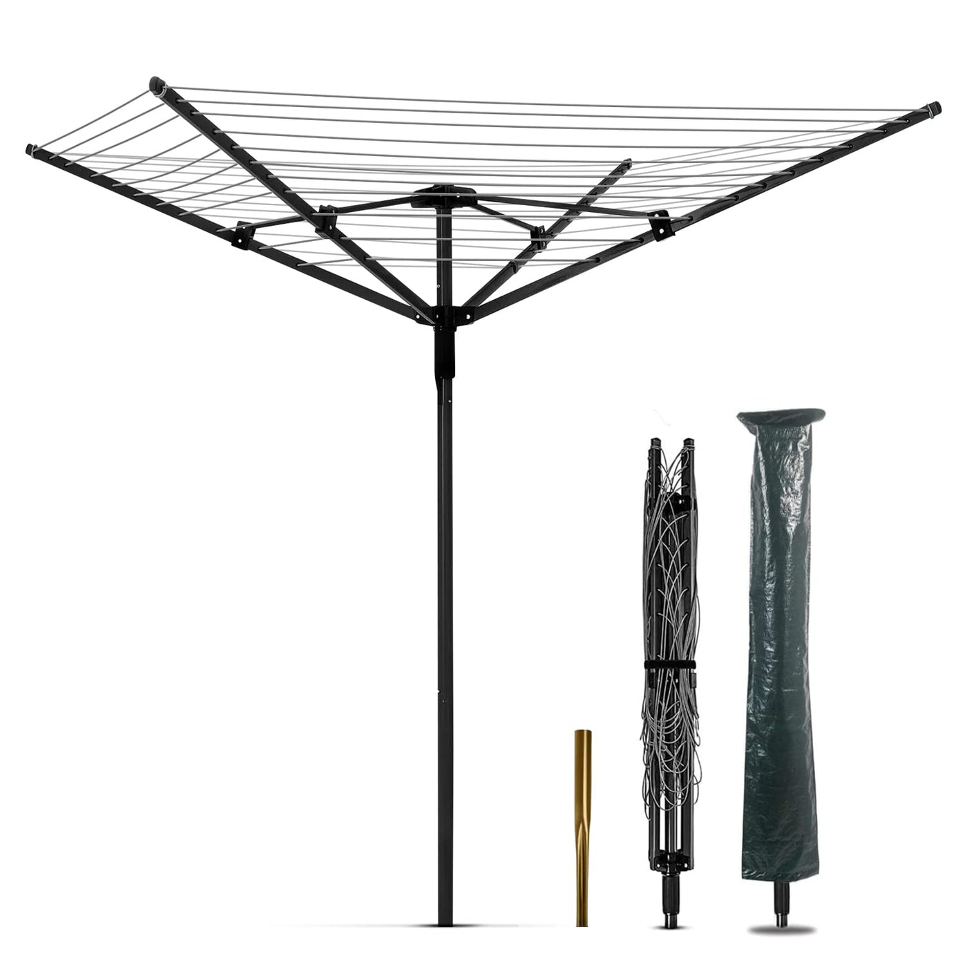 Nisorpa Rotary Outdoor Umbrella Drying Rack Adjustable Height Clothesline W/Waterproof Protective Cover Folding Rotary Dryer Wit