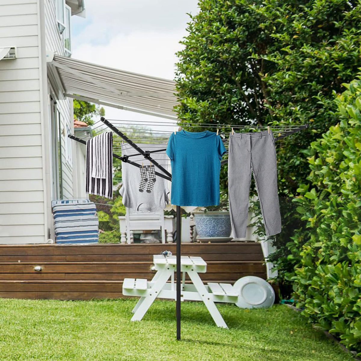 - Q: What is the drying capacity of the Nisorpa Rotary Outdoor Umbrella Drying Rack? A: The Nisorpa Rotary Outdoor Umbrella Drying Rack features 12 rows of clotheslines, providing a total of 165 feet of drying length, allowing you to dry a wide variety of clothing items including coats, pants, and quilts.
