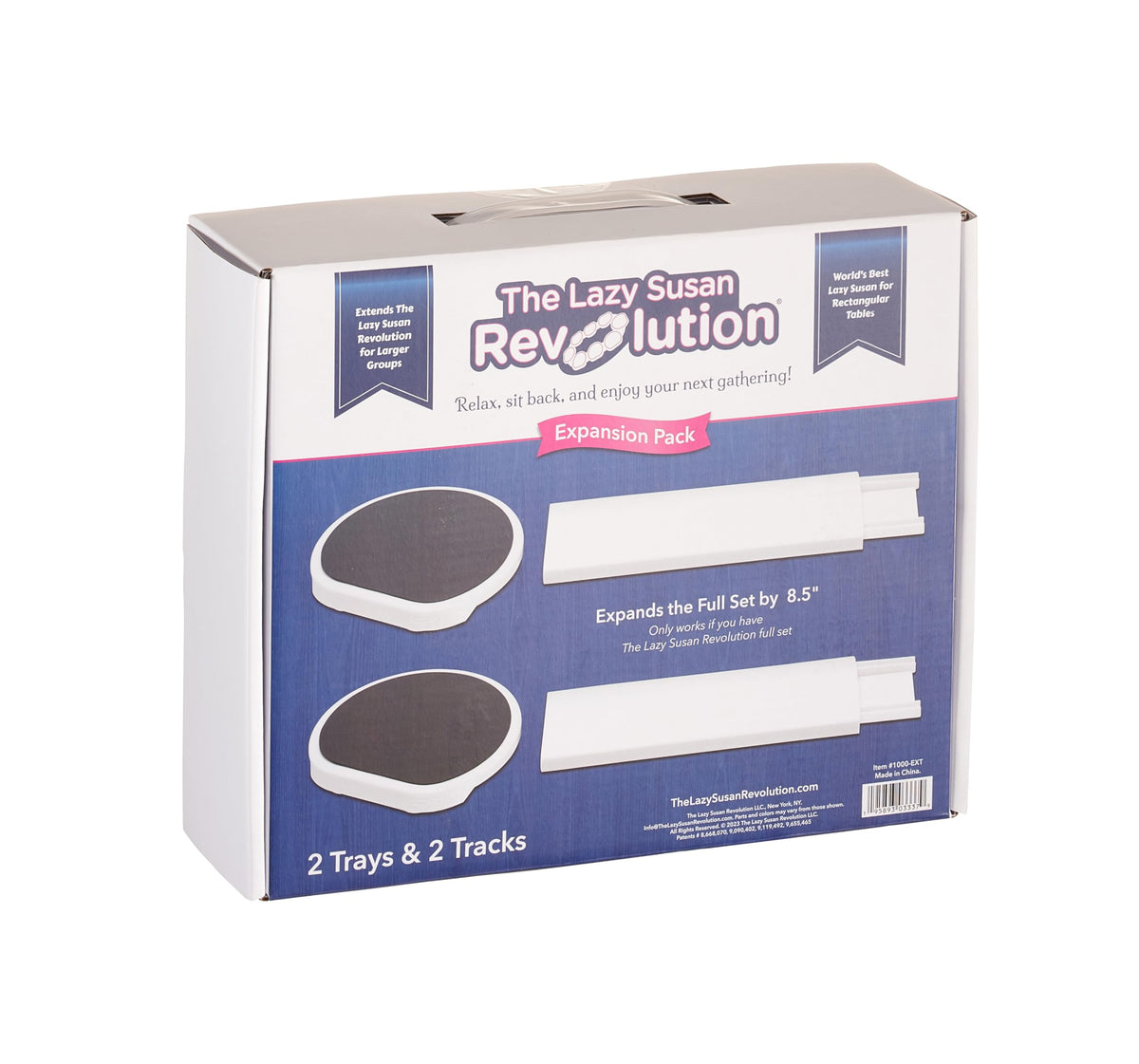 • Q: What are the dimensions of the Lazy Susan Revolution Extension? A: The Lazy Susan Revolution Extension measures 8.5 inches in length, providing ample extension for larger tables.