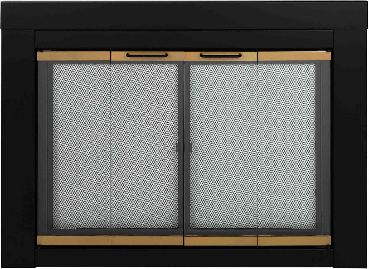 • Q: What materials are used in the construction of the Pleasant Hearth AR-1022 fireplace door? A: The Pleasant Hearth AR-1022 fireplace door features a black finish with moonlight gold trim and clear glass panels, along with rigid mesh firescreen panels.