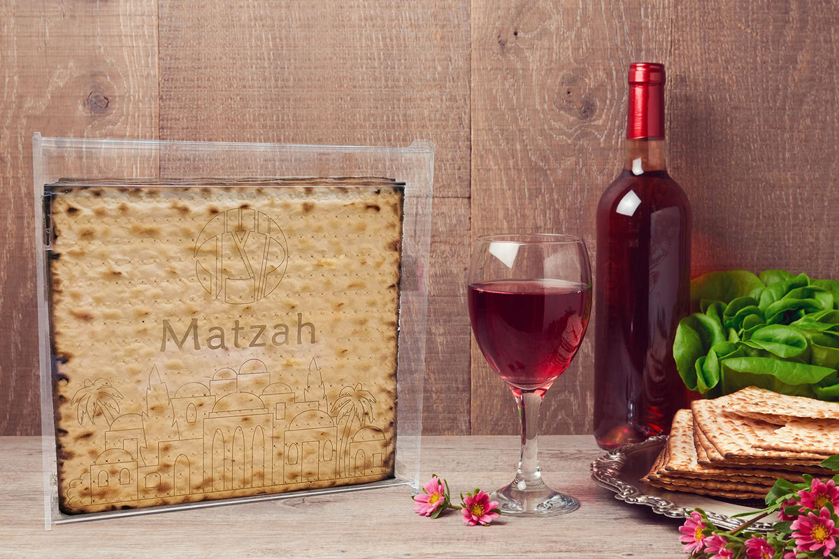 • Q: What materials is the Matzah box made from? A: The Matzah box is crafted from durable acrylic, providing a clear view of the Matzah while keeping it fresh.