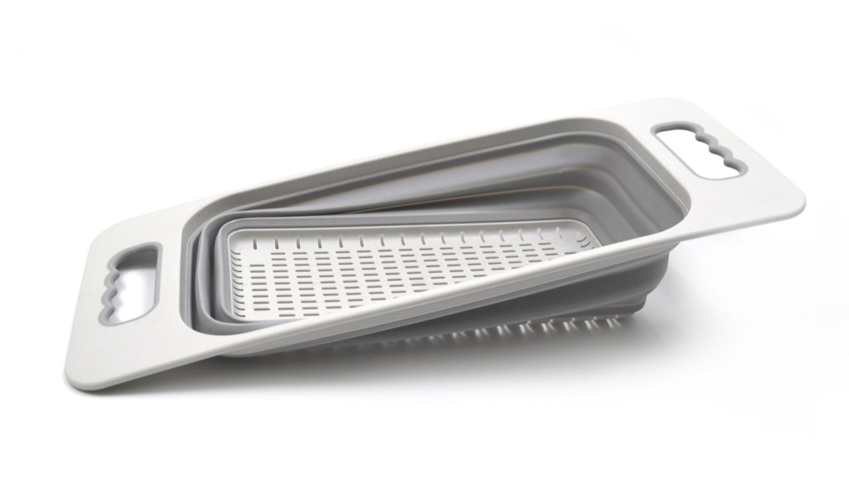 • Q: What are the dimensions of the SAMMART Over The Sink Rectangular Colander? A: The expanded size of the SAMMART colander is 17.2 inches long, 7.28 inches wide, and 3.5 inches high. When collapsed, its height is just 1 inch.