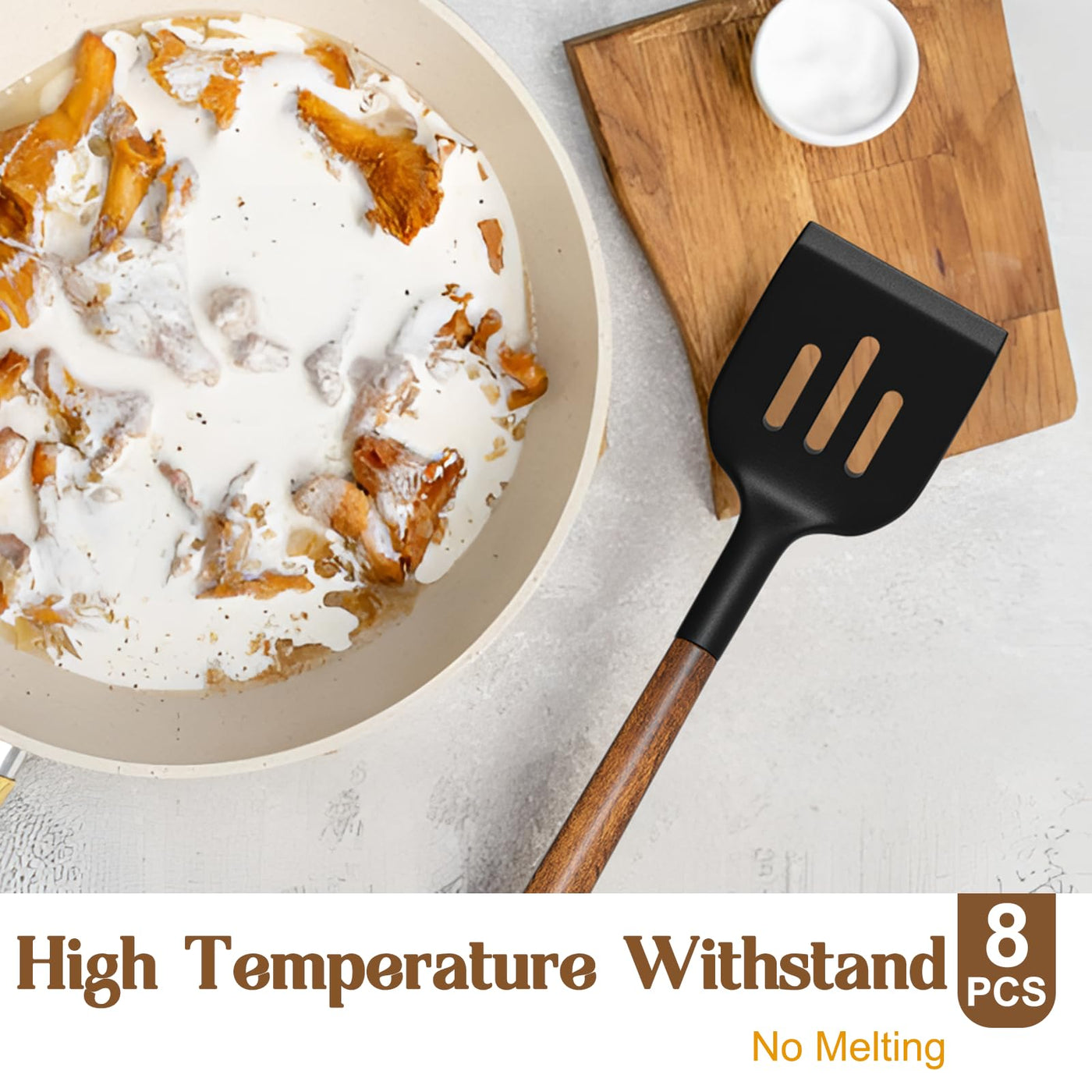 - Q: What is the heat resistance range of these silicone utensils? A: The silicone utensils can withstand temperatures ranging from -22 degrees to 446 degrees Fahrenheit, making them suitable for various cooking tasks.