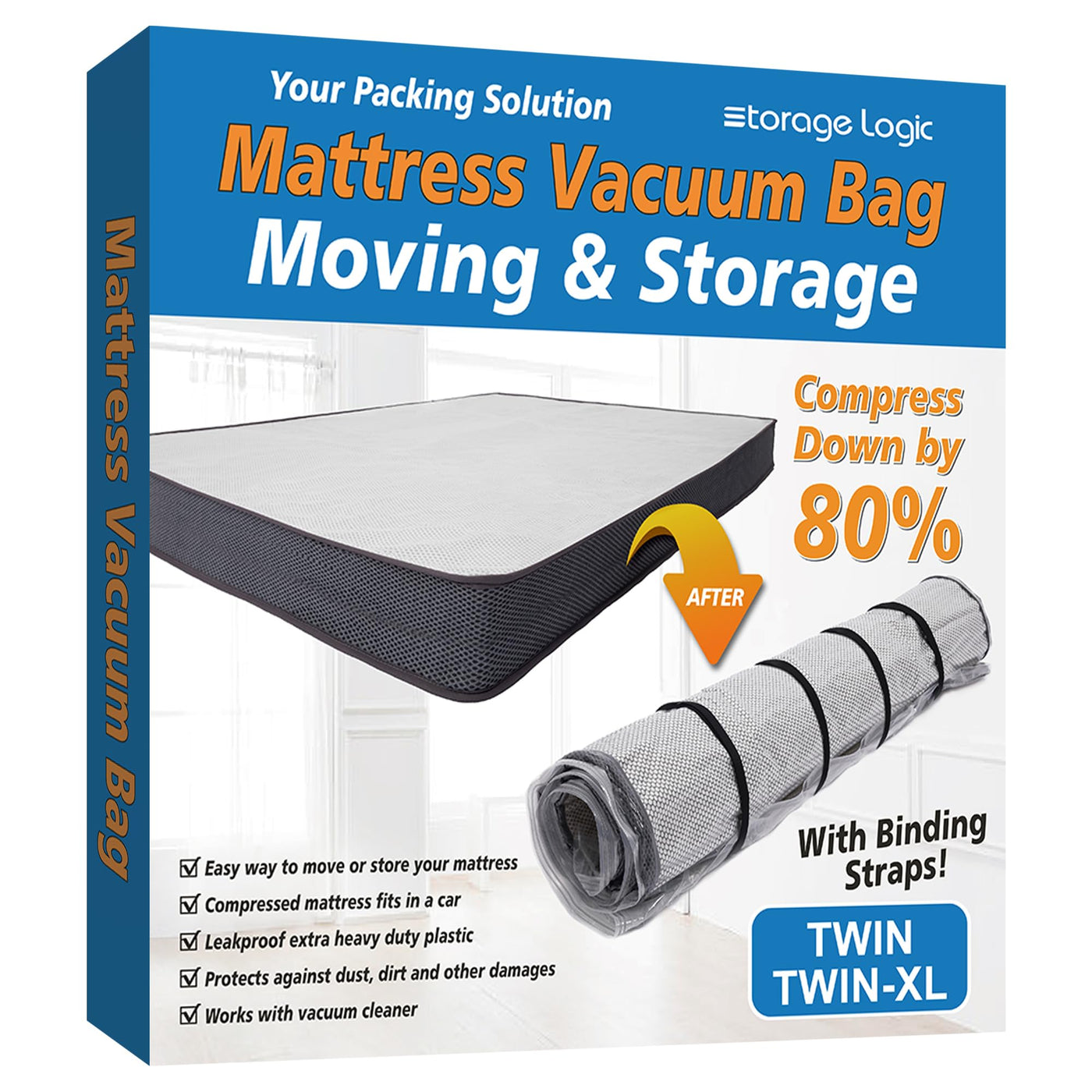 • Q: What sizes of mattresses does the vacuum bag fit? A: The vacuum bag is designed to accommodate twin and twin XL sized mattresses with a thickness of up to 18 inches.