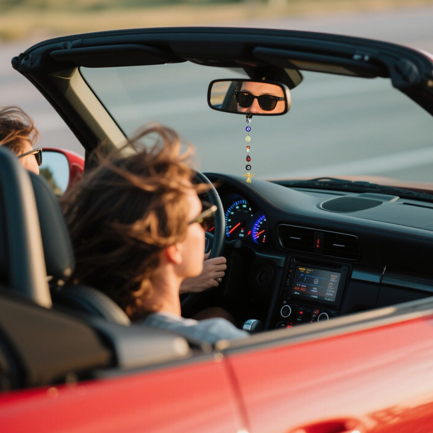2pcs Car Rear View Mirror Hanging Accessories Cross Angel Evil Eye Charm Ladybug 8 Ball Mushroom Four Leaf Clover Yin Yang Symbo