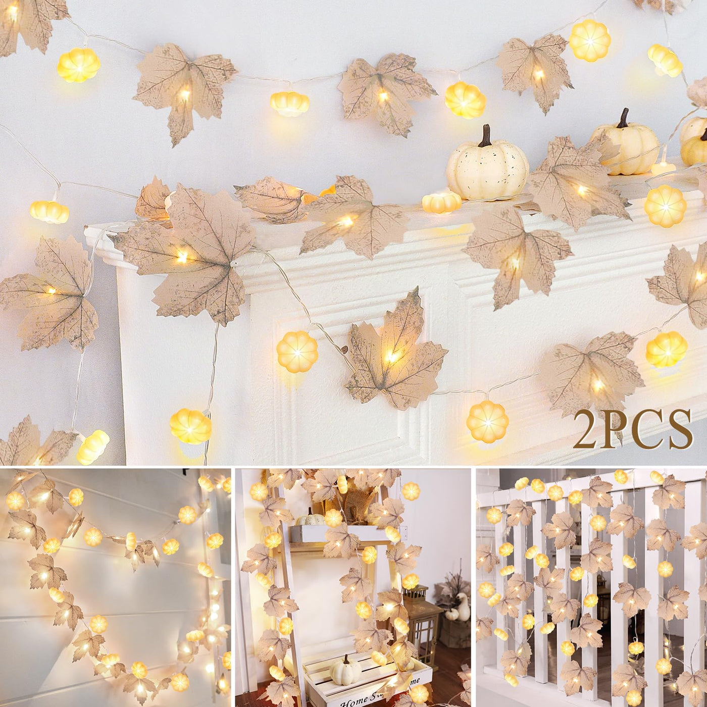 3D Pumpkin Lights & 60 LED, 2 Pack Thanksgiving Garland Fall Decor, Total 20Ft Maples Leaf Garland Fall Lights Thanksgiving Deco