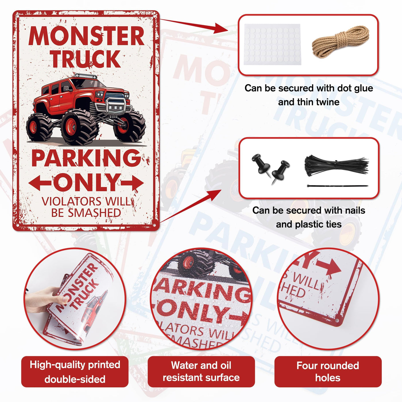 4 Pcs Monster Truck Parking Only Wall Decor for Boys, Monster Jam Only Violators Will Be Smashed Wall Room Door Signs, Monster T