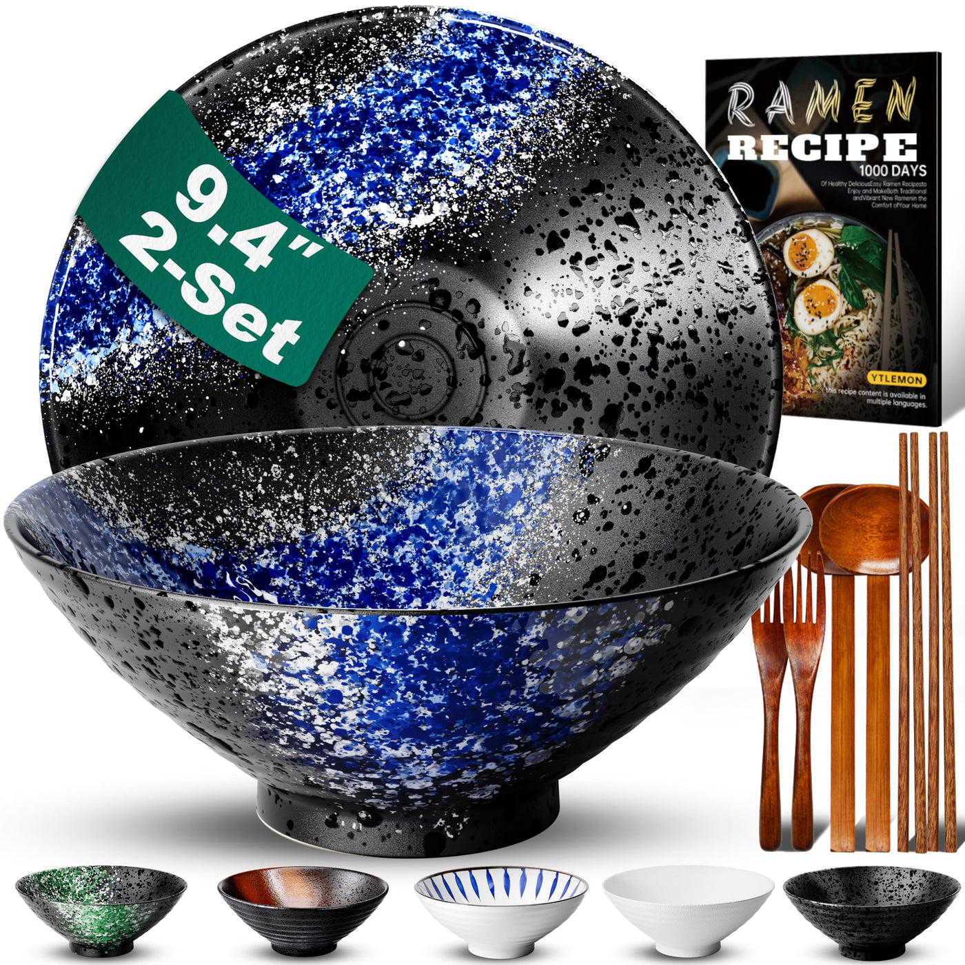 Featuring a large capacity Multiple sets ceramic ramen bowl, you can enjoy a hearty meal to your heart s content. No more worries about food overflow, savor every bite.Uniquely designed and hand-painted, the ceramic ramen bowl is a perfect blend of art and practicality, bringing users the ultimate dining experience. In addition to your own use, this ceramic ramen bowl is also the best choice for family and friends.But the most attractive feature is the rich and varied recipe possibilities. The power of unlimited creativity combined with the passion for food is now in your hands.Make every meal a wonderful and unforgettable memory with this set of ceramic ramen bowls. Package Included Large Porcelain Bowls Wood SpoonWood ChopsticksWood Forks A Noodle E-book A Gift Box