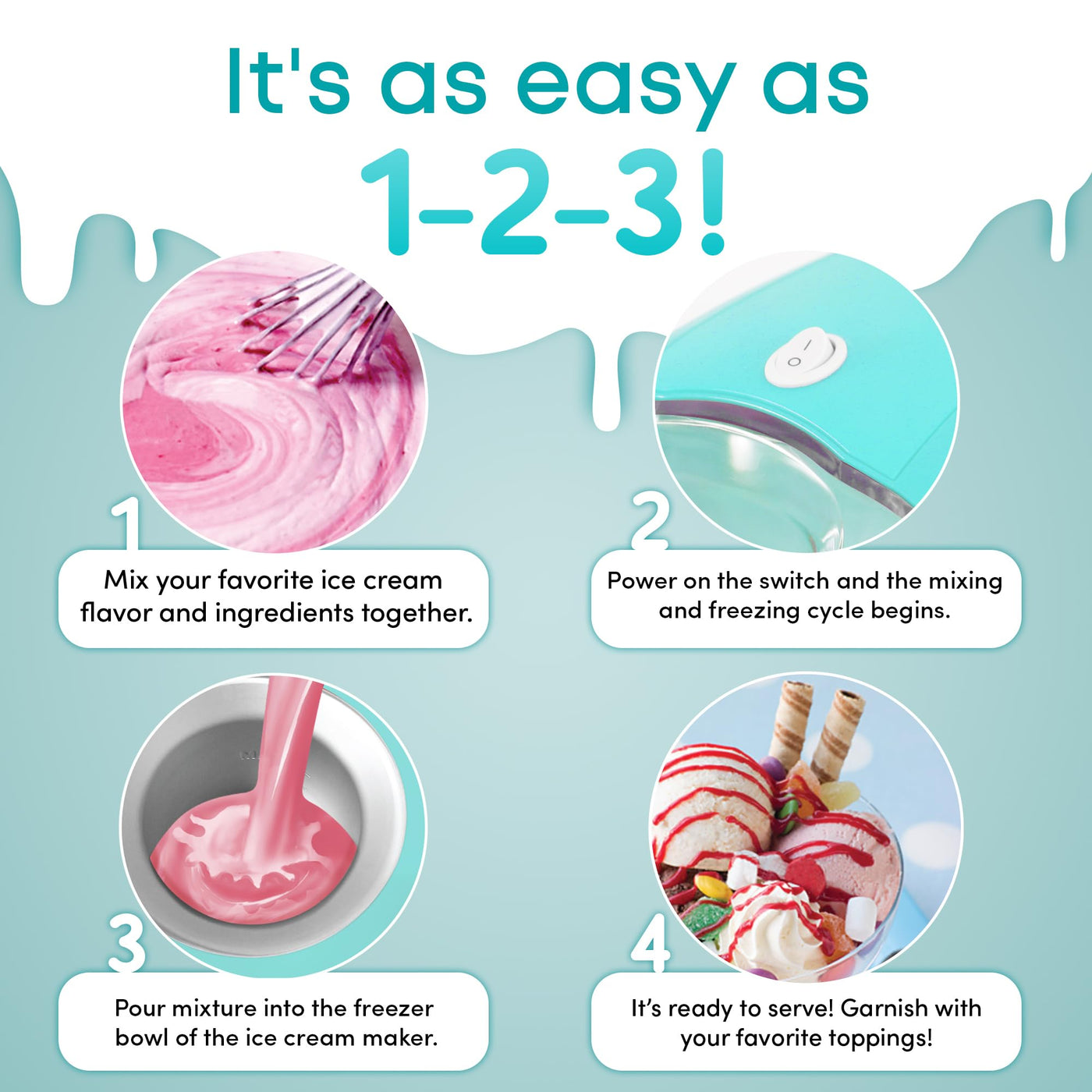 - Q: Can I add mix-ins to my ice cream while it's being made? A: Yes, the motorized paddle quickly crushes and integrates mix-ins like cookies, fruit, and chocolate chips into the ice cream mixture.