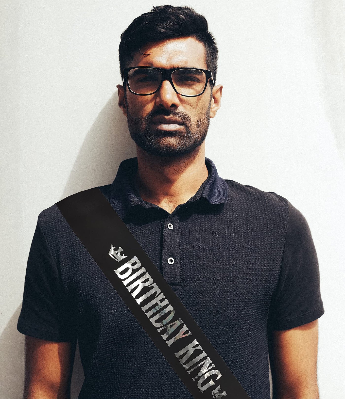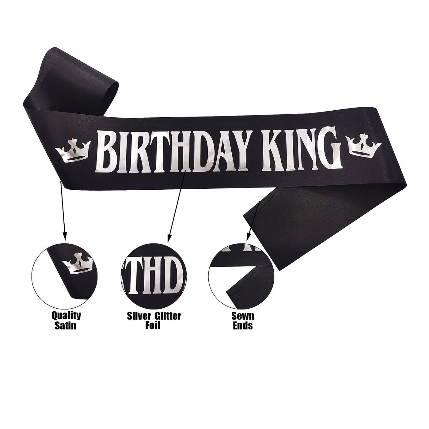 Birthday Gifts For Men,Boy Birthday King Sash Birthday Party Supplies And Decorations (Black-Silver)