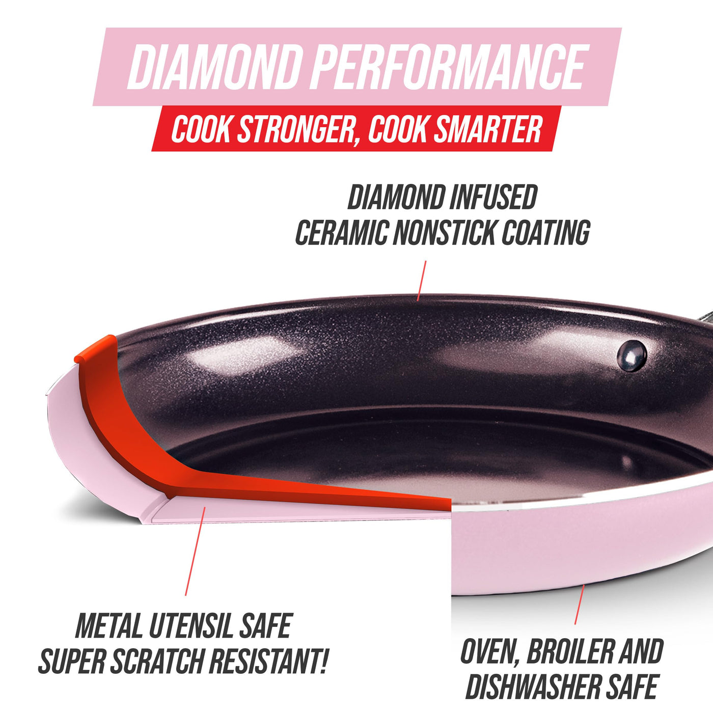 - Q: What makes the Blue Diamond frying pan different from traditional nonstick pans? A: The Blue Diamond frying pan has a diamond-infused coating that is 5 times harder and lasts 10 times longer than traditional nonstick coatings, providing superior durability and performance.