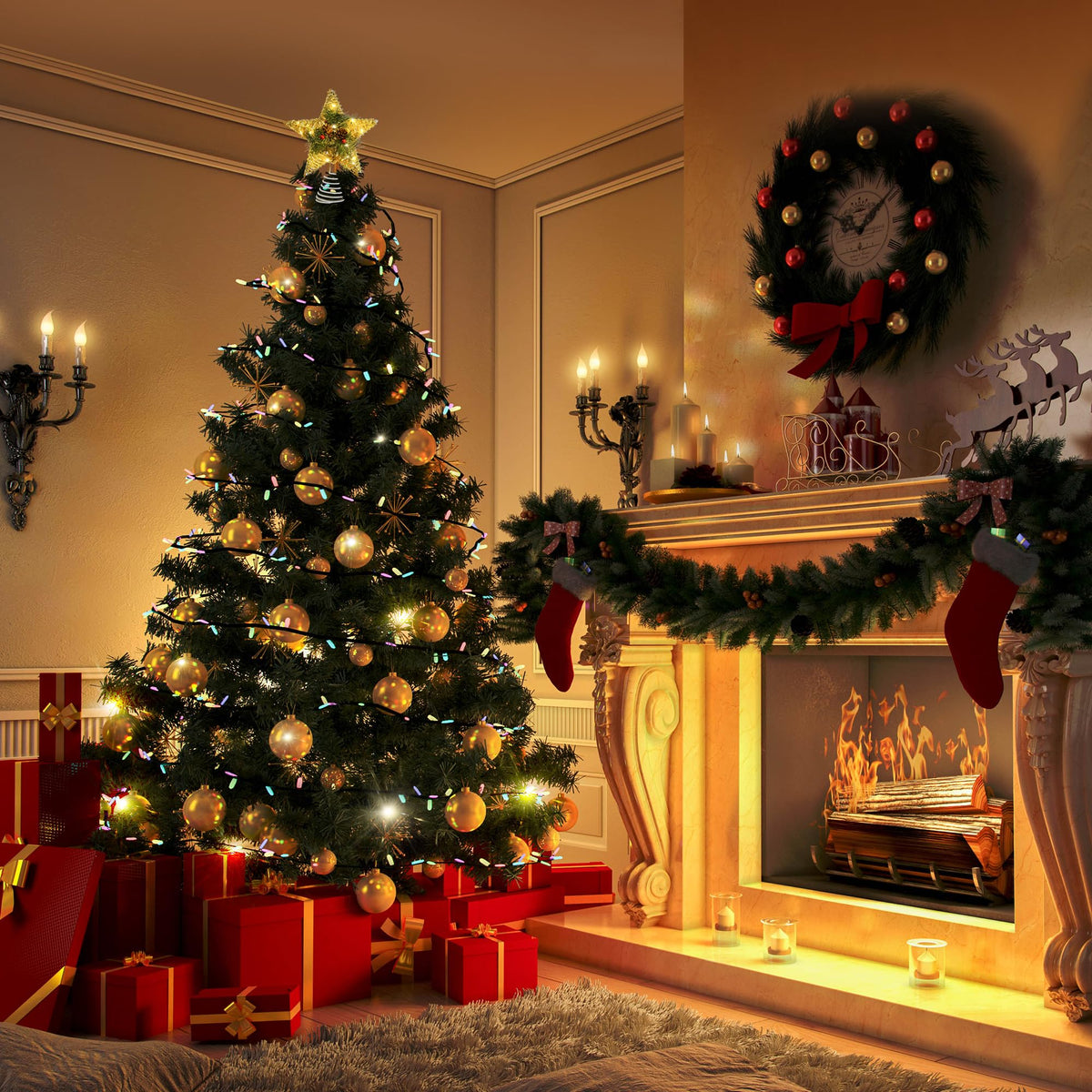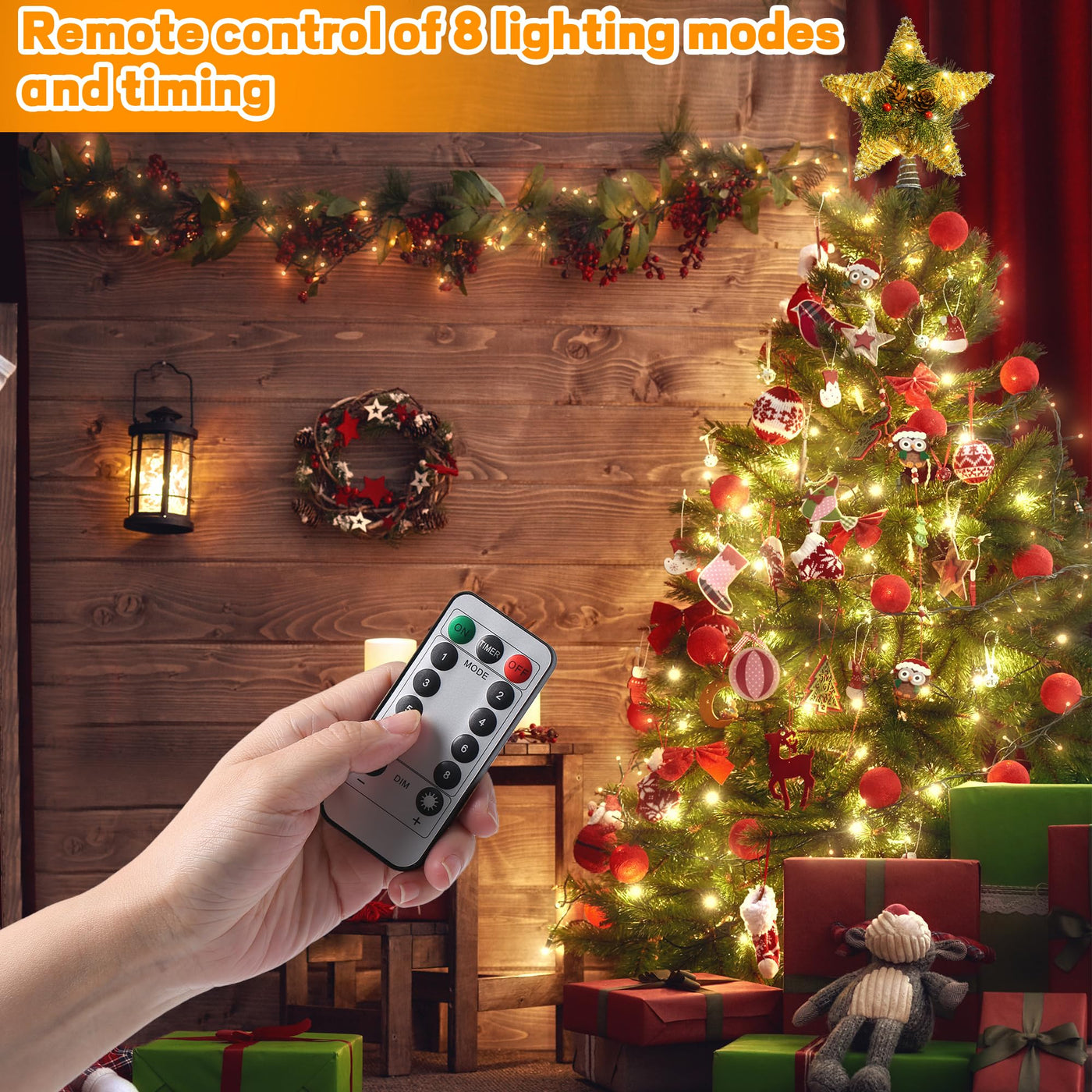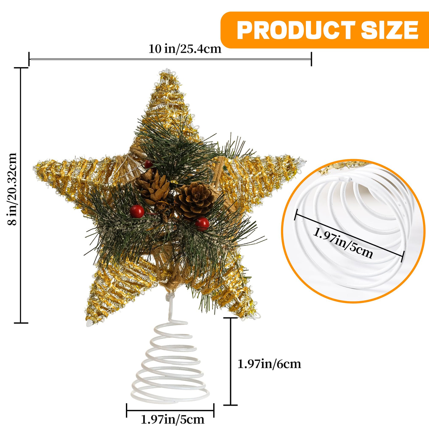 Christmas Tree Topper, 10 Gold Glittered Star with Hollow Design, Battery Operation Tree Topper Star with 20 LEDs for Christmas
