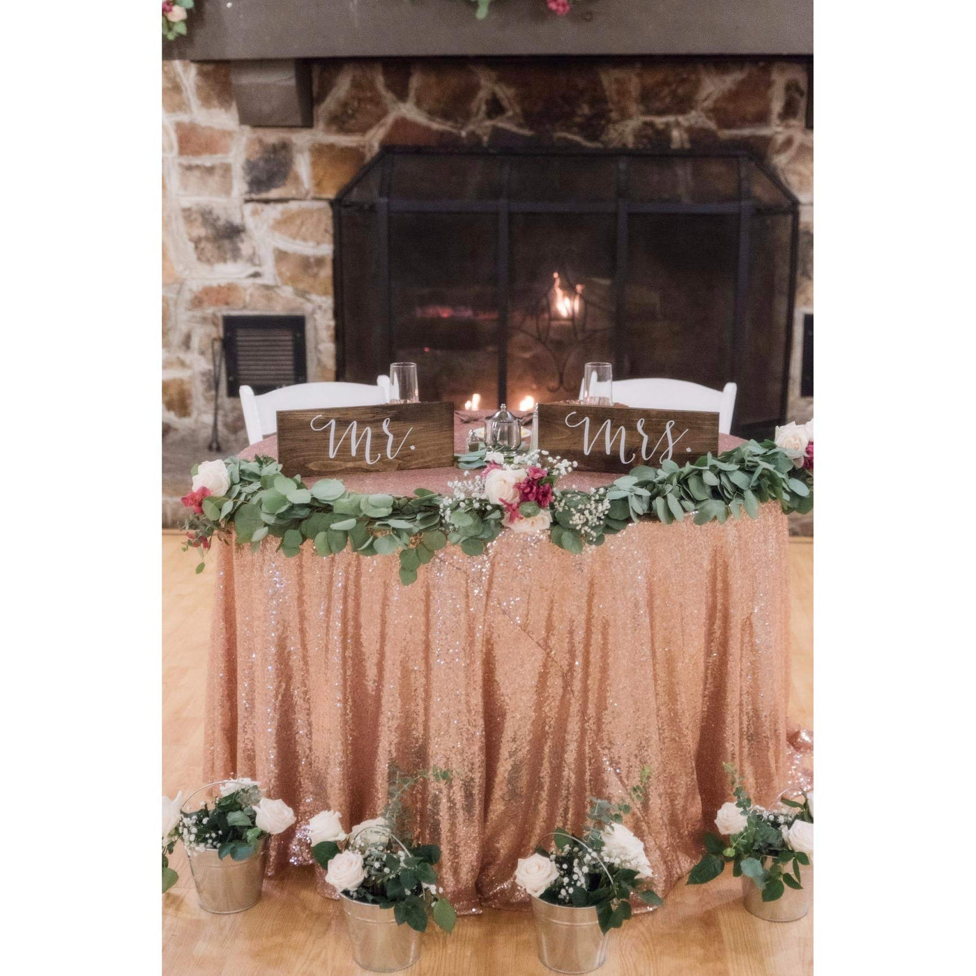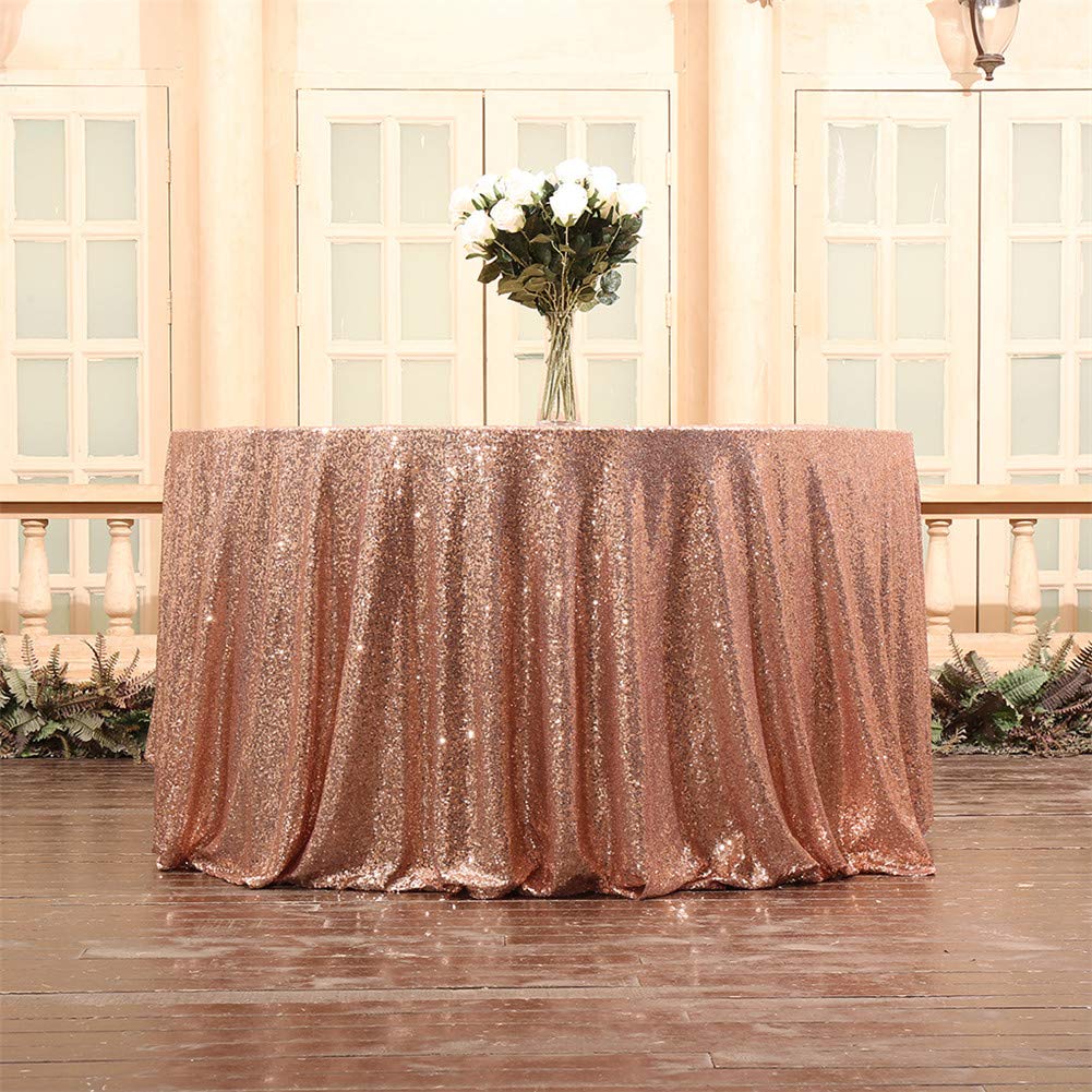 Eternal Beauty Rose Gold Sequin Tablecloth 120-Inch Sparkly Overlay Round Glitter Table Cover for Wedding Party Birthday Decorat