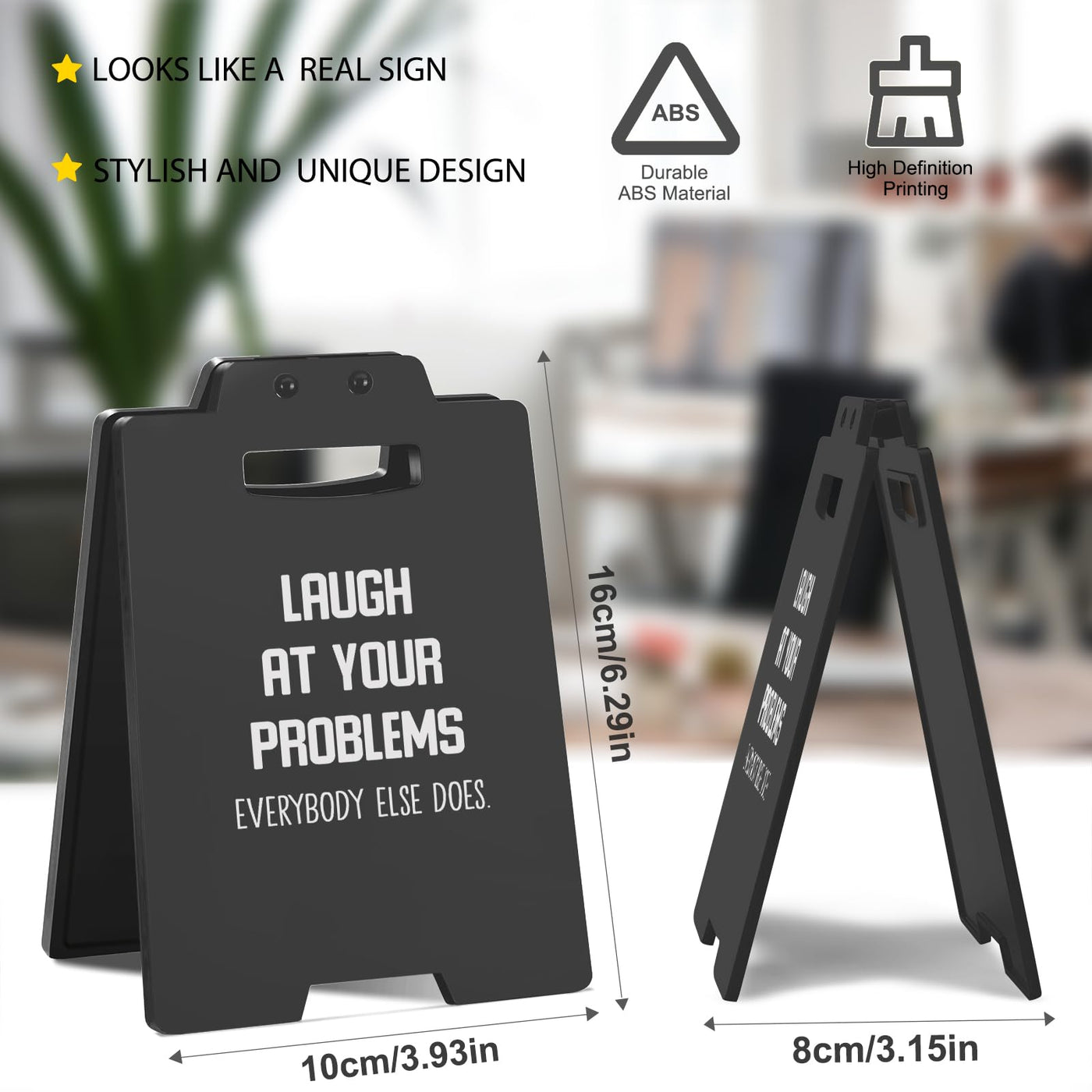 Funny Desk Sign - Laugh at Your Problems, Everybody Else Does - Sarcastic CubicleDecor - Humorous Office Desk Accessories for Wo