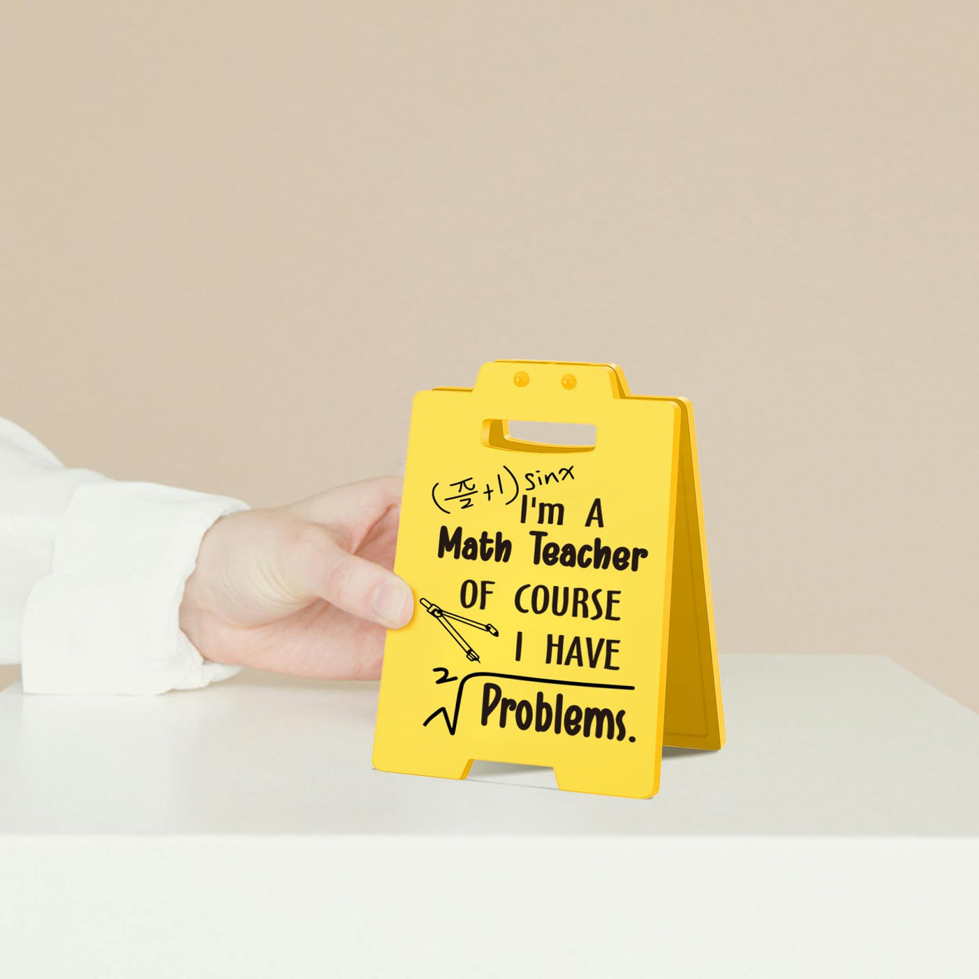 If youre a math teacher, you already know the joke-of course you have problems (lots of them). This witty desk sign turns a math pun into hilarious decor for your classroom, office, or remote teaching setup. Featuring a bright yellow mini caution sign style, its the perfect size to make a statement without taking up much space. Whether youre giving it as a teacher appreciation gift or using it to spice up your own desk, this sign brings humor and relatability to any math-lovers life. Celebrate the brilliant, quirky, and slightly overwhelmed minds of math educators everywhere-because equations arent the only problems they solve daily.
