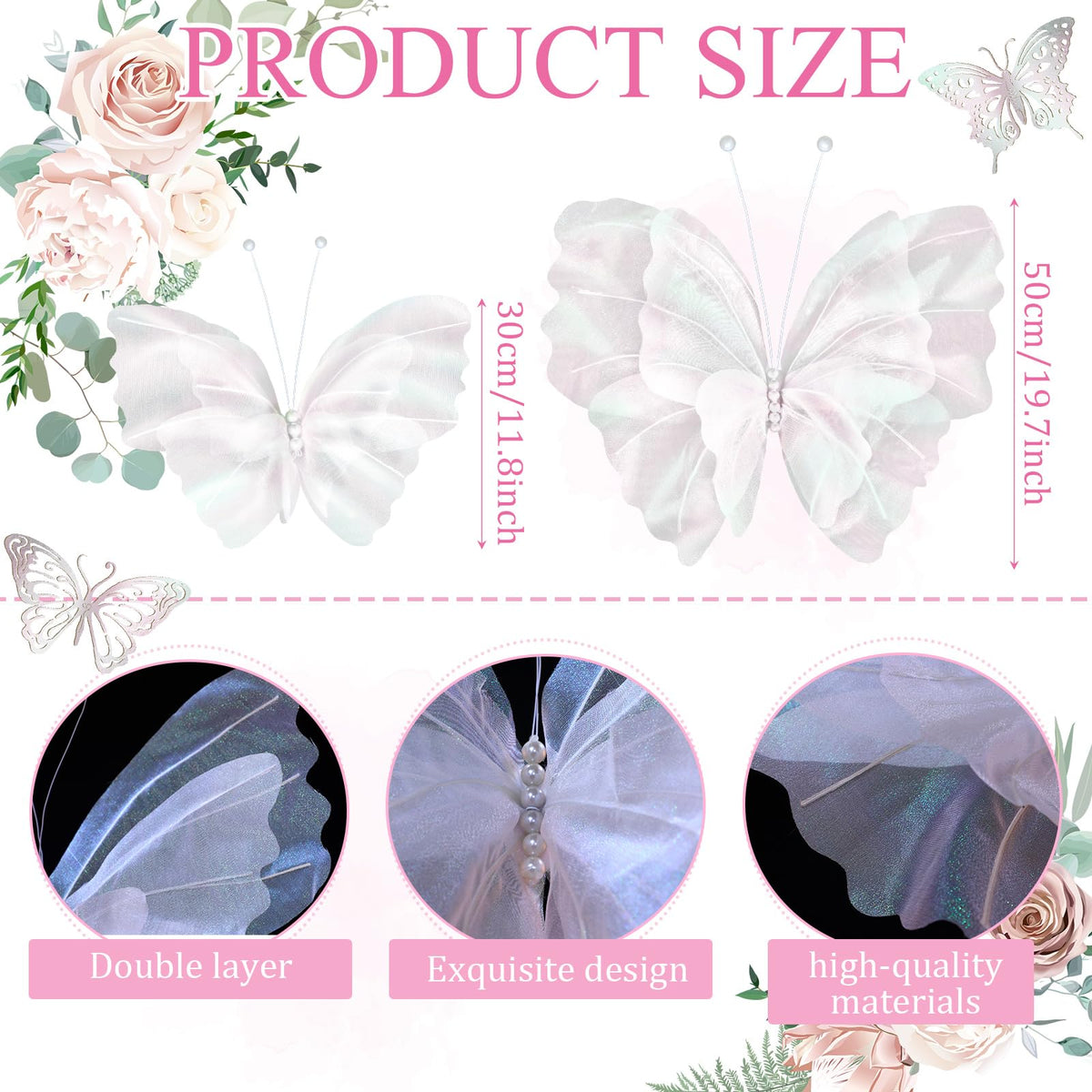 Features: Dreamy White Color: add a touch of elegance to your party or home with the delightful white hue of these butterflies. Their soft color complements various themes, from whimsical birthdays to sophisticated weddings. Complete Set for Creative Freedom: with six giant butterflies in each package, you'll have something you need to create a stunning display. Mix and match sizes to suit your creative vision and make most occasion truly memorable. Specifications: Material: gauze Color: white Size: 3 X 19.69 inches/ 50 cm 3 X 11.81 inches/ 30 cm Package includes: 6 X Giant butterfly Notes: Manual measurement, please allow slight errors on size. The color may exist a slight difference due to different screen displays.