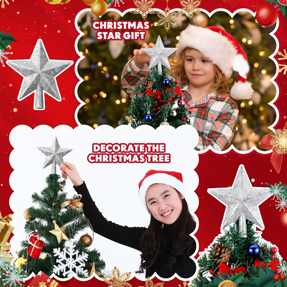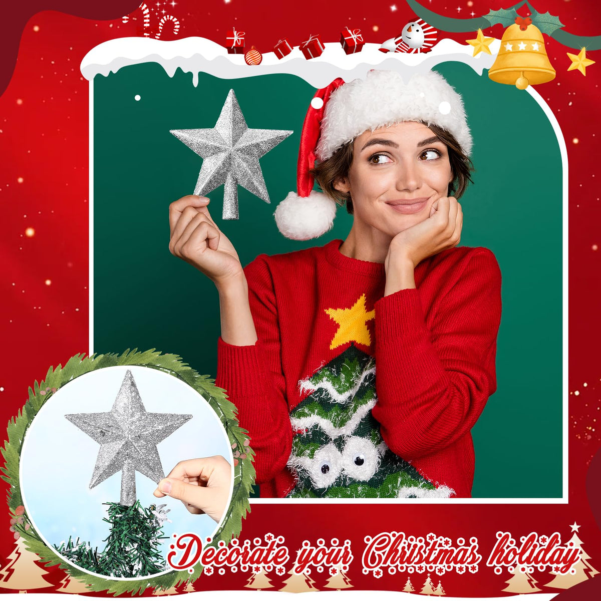 Hanaive 6 Inches Christmas Tree Topper Glitter Star Tree Topper Christmas Tree Decoration Treetop Decorative Star Ornaments for