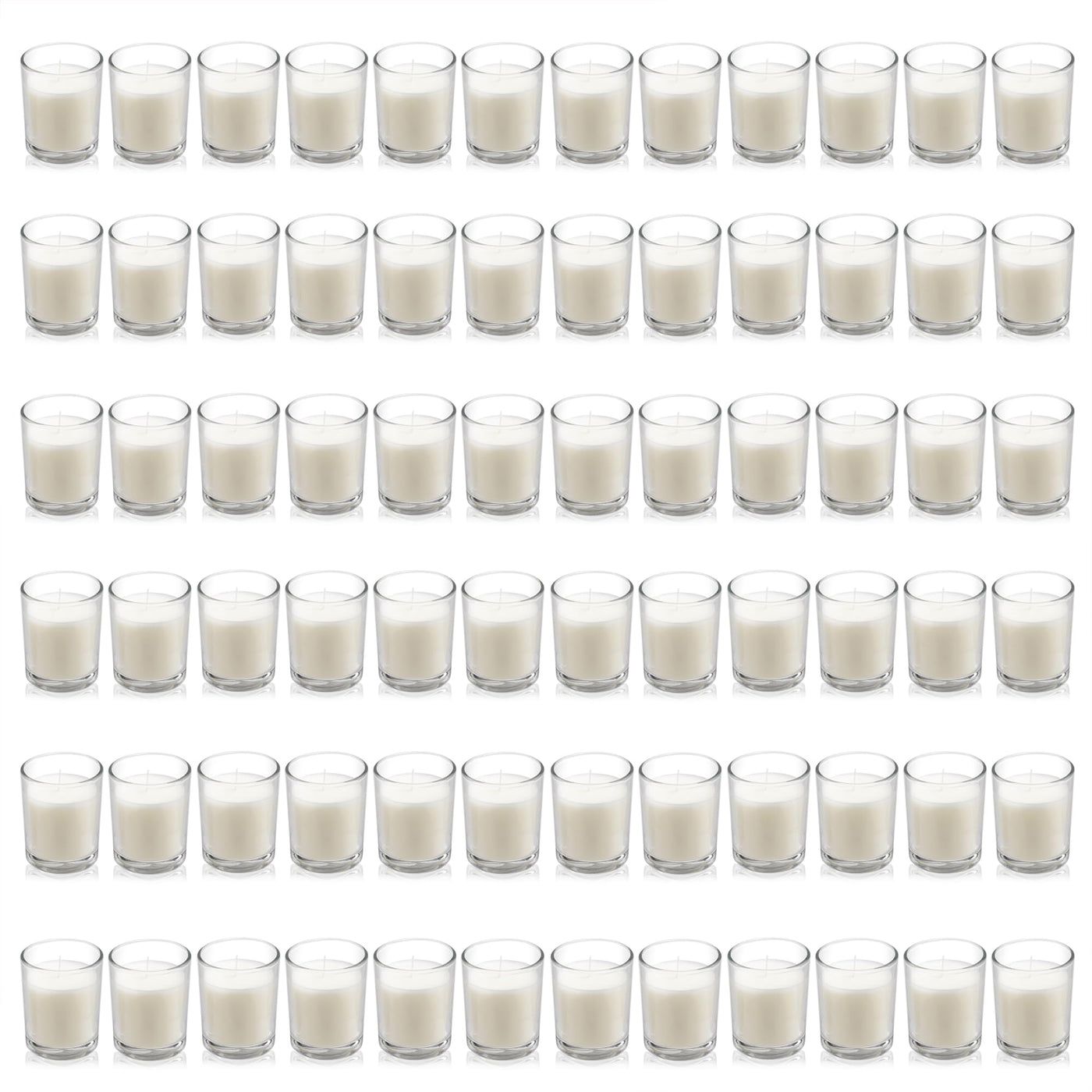 Housecret 72 Pack Warm White Unscented Clear Glass Filled Votive Candles. Hand Poured Wax Candle Ideal Gifts for Aromatherapy Sp