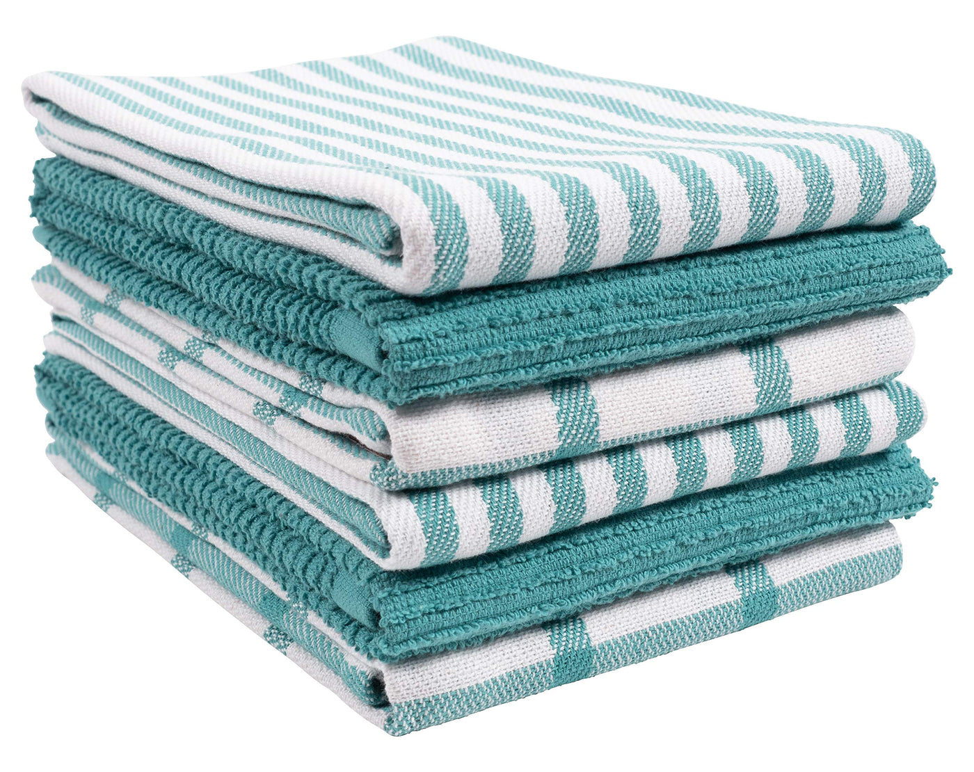 Kaf Home Premium Kitchen Towels (18'' X 28'', 6 Pack), Large 100% Cotton, Flat & Terry Absorbent Dish Towel Set (Teal)