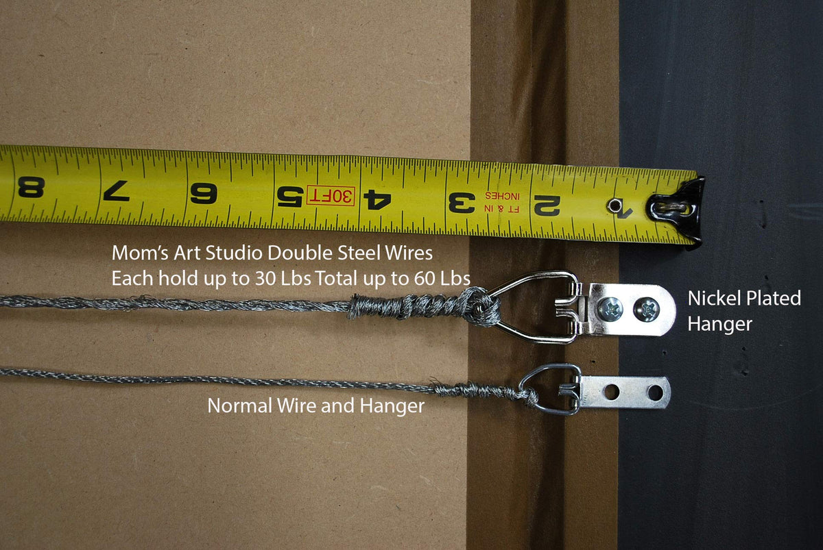 • Q: What is the weight capacity of the hanging hardware? A: The double braided steel wire can hold up to 60 pounds, with 30 pounds for each of the two wires.