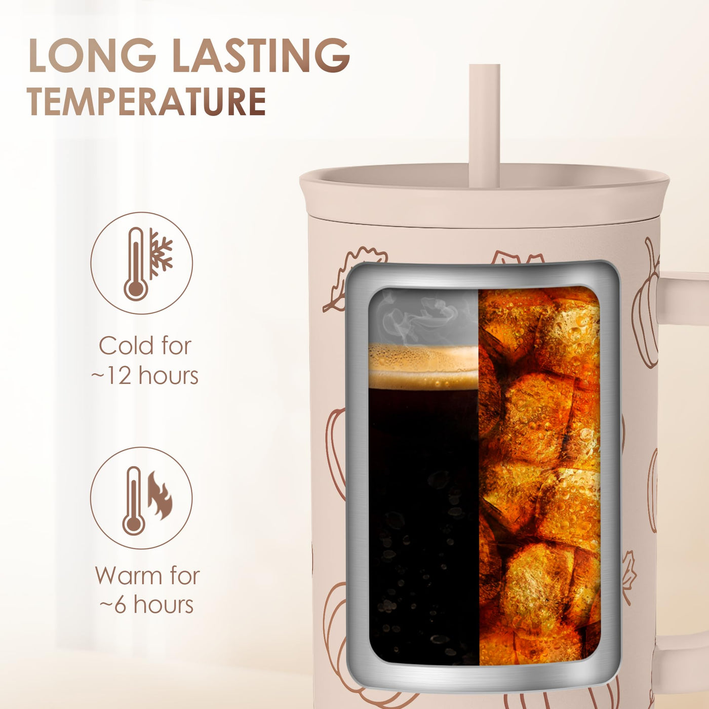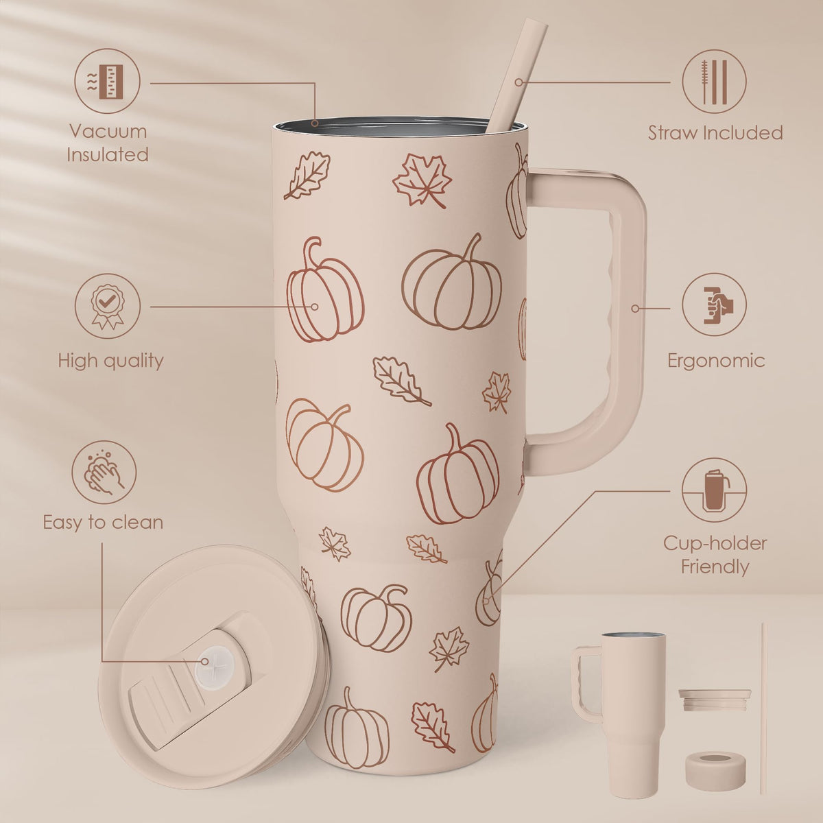 Pumpkin Tumbler with Handle and Straw 40oz - Stainless Sleel Slider Tumbler Travel Coffee Mug for Women - Gift Idea for Fall Aut