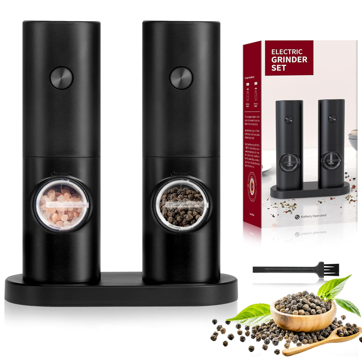 Simple Deluxe Electric Salt and Pepper Grinder Set, One Hand Adjustable Coarseness, Battery Powered, Seasoning Tools for Kitchen