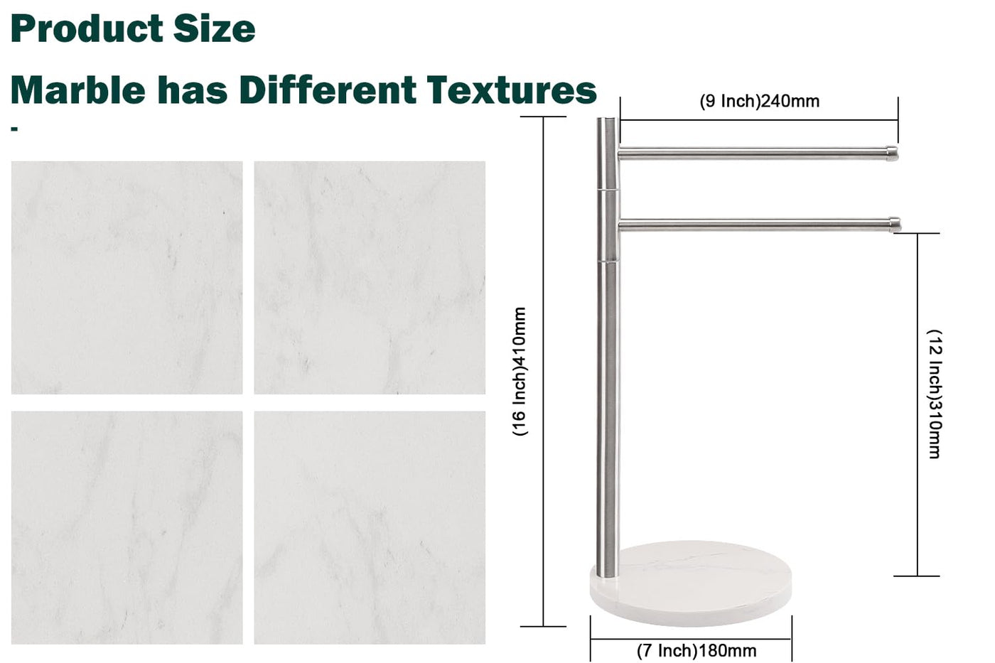 • Q: Is the marble base heavy enough to keep the towel holder stable? A: Yes, the heavy marble base ensures that the towel holder remains stable and solid during use.