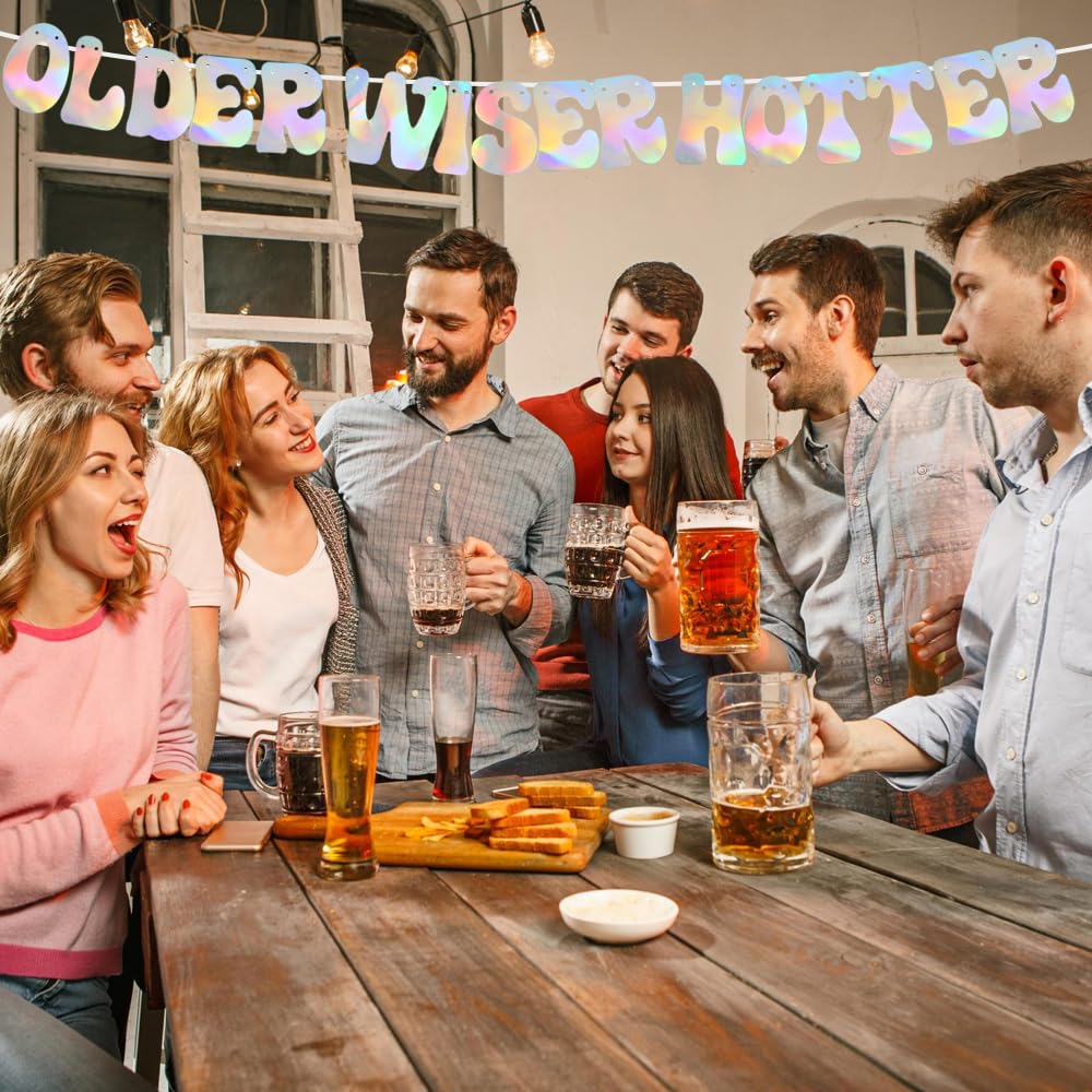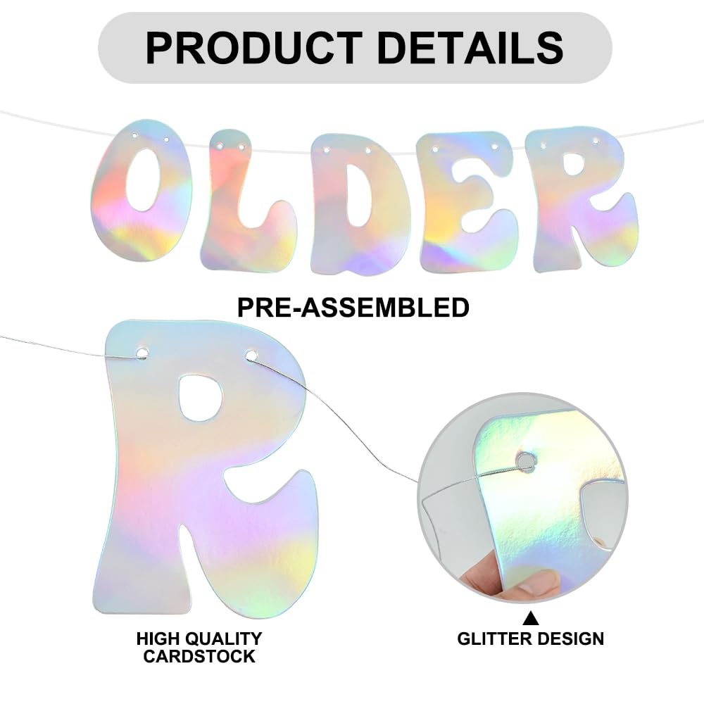 Beishida Iridescent Glitter Older Wiser Hotter Banner -No Diy - Pre-Strung Birthday Banner Decoration For 40Th 50Th 60Th 70Th 80