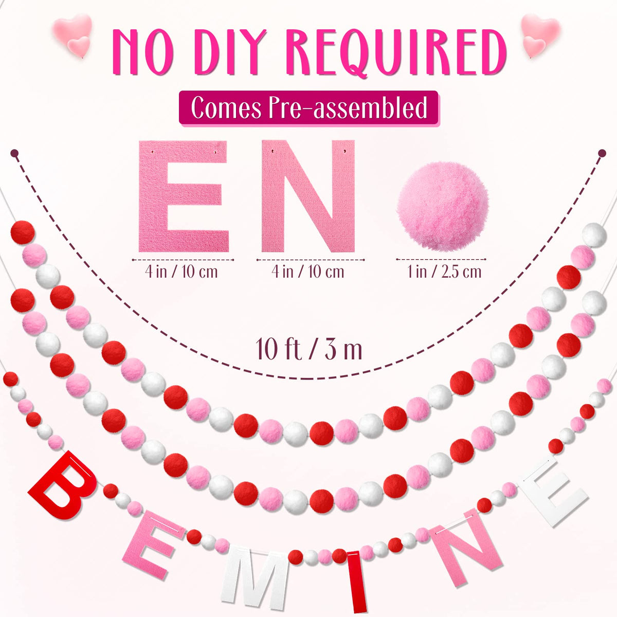 Breling 3 Pieces Valentine'S Day Garland Felt Ball Garland, 10Ft Pompom Garland Valentines Decorations Banner For Mantle Firepla