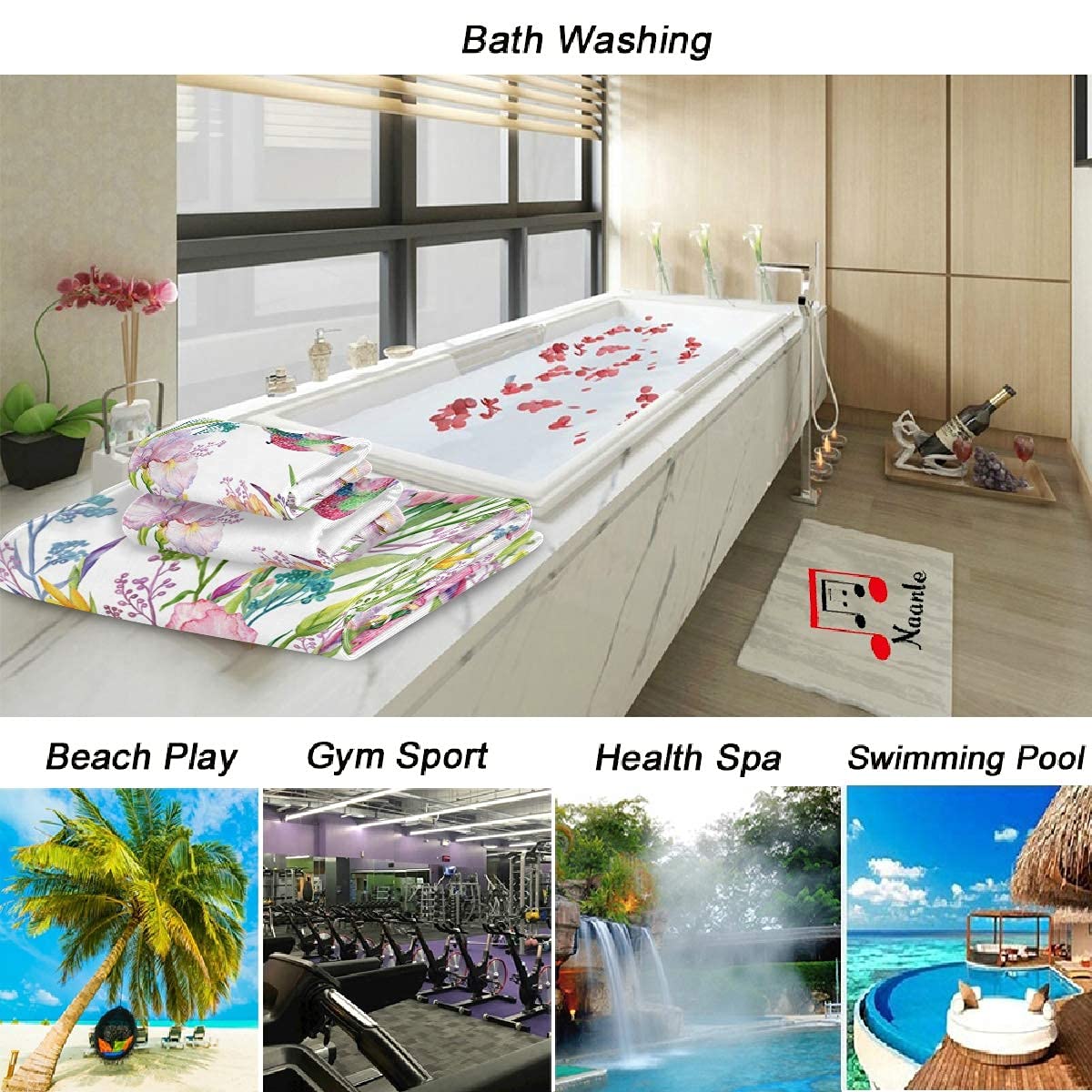 Naanle Spring Hummingbird Irises Flowers Floral Soft Luxury Decorative Set Of 3 Towels, 1 Bath Towel+1 Hand Towel+1 Washcloth, M