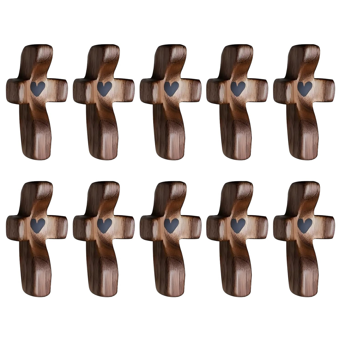 Yookin Cross My Heart | Encouragement Gift Wooden Fingertip Stress Relief Gifts Pocket Small Cross Christmas Handheld White 10pc