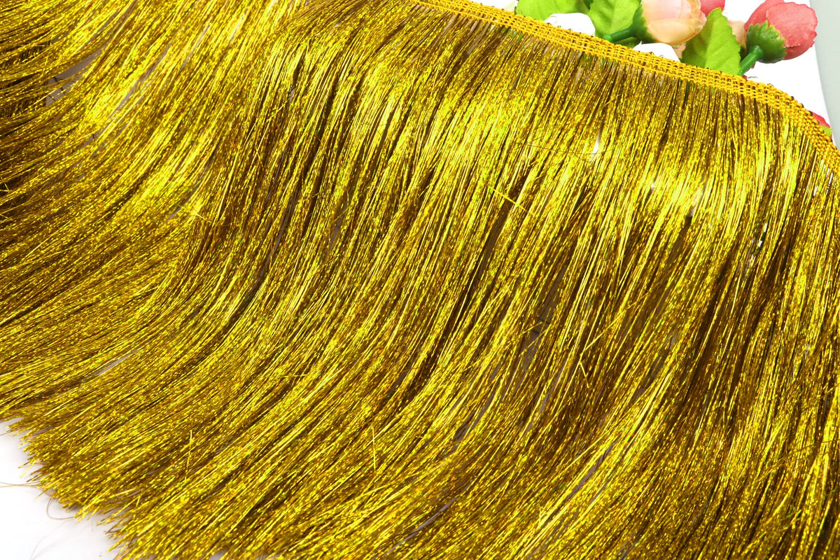 YYCRAFT 8 Wide Dance Costume Fringe Trimming - Shiny foil Effect Party Decor (5 Yards, Laser Gold)
