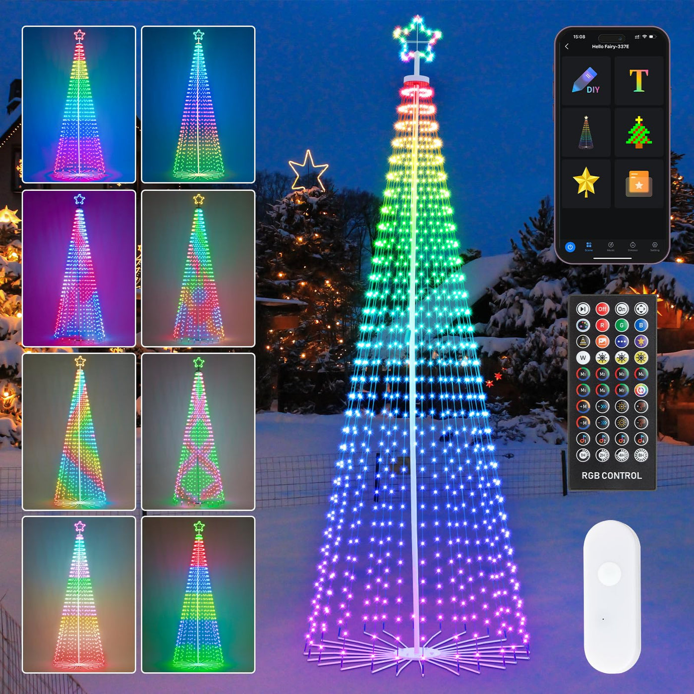 12FT Outdoor Christmas Tree, RGB Color Changing Pre-lit Smart Cone Christmas Tree with LED Lights, App&Remote Control, DIY Multi-Color Lightshow, Music Sync, Christmas New Year Decoration