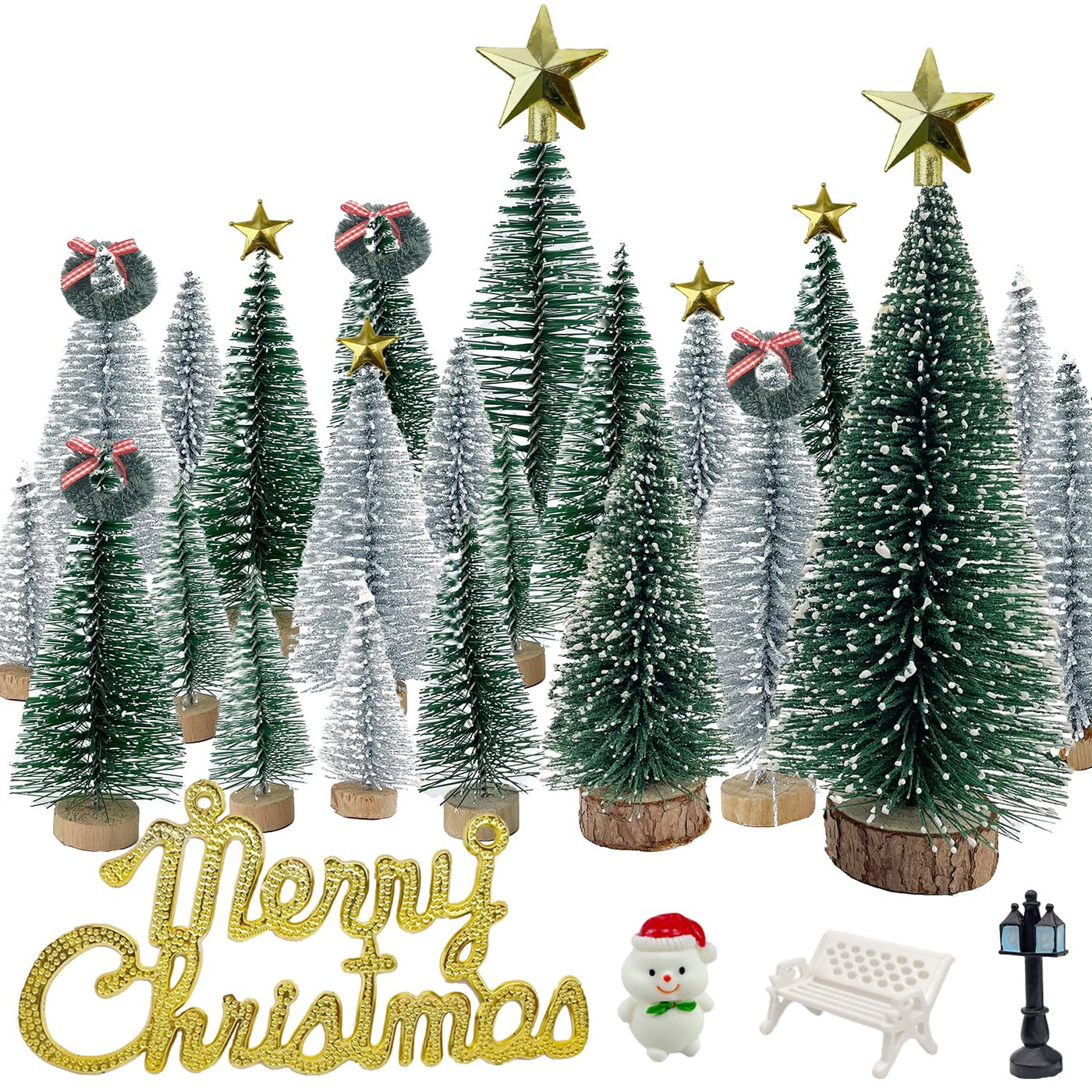 NotiGat Miniature Christmas Pine Tree mini Bottle Brush Christmas Trees Table top Village Winter Tree for Christmas Decorations