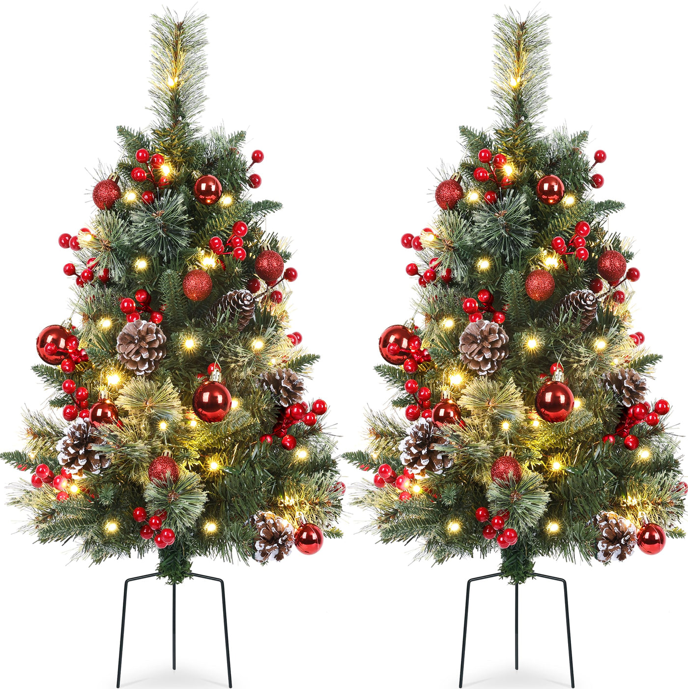 TOWPONICS Set of 2 Outdoor Pathway Christmas Trees with Lights, 30in Prelit Battery Operated Artificial Xmas Tree Holiday D cor