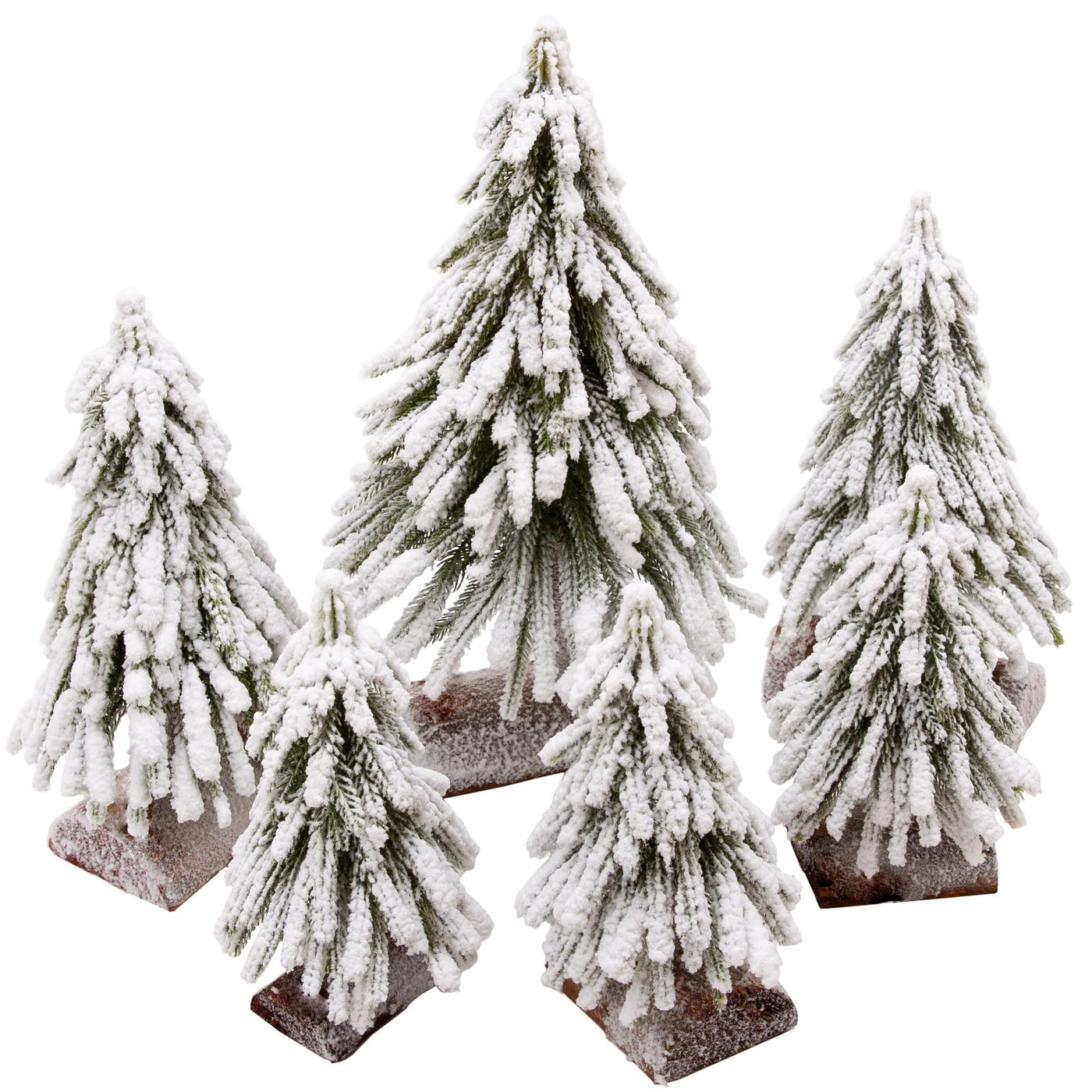 VGIA 6pcs Mini Christmas Tree Small Christmas Tree Artificial Separate Tabletop Trees with Spray Snow Wooden Bases for Winter Vi