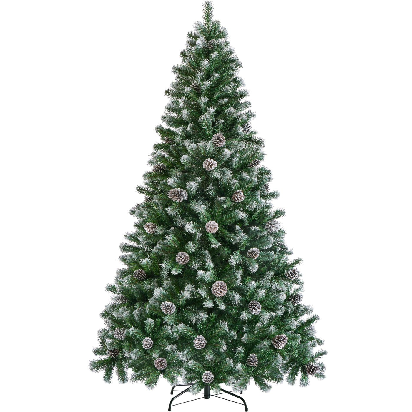 Real Pinecones: Decorated with real pine cones, the hinged Christmas tree brings a touch of vividness indoors, adding a lively and authentic winter feel to your home during the festive season | Snow-frosted Branches: The frosted branches on the Christmas tree are designed to mimic the look of snow-dusted trees, creating a magical effect that adds to the festive atmosphere | Versatile Placement: This Christmas tree is ideal for various settings, from living rooms to offices and porches. Its lifelike appearance complements different decor styles, bringing holiday cheer everywhere | Lush Snowy Elegance: This 6ft Christmas tree features dense snow-frosted branches and natural pinecones, bringing the charm of a wintry forest indoors. Ideal for living rooms, porches, or offices, it fills every space with festive warmth and beauty | Sturdy Metal Foundation: Built on a powder-coated metal base, this frosted Christmas tree stands strong and balanced throughout the season. Its steady structure and protective foot caps help safeguard floors while ensuring a secure holiday display