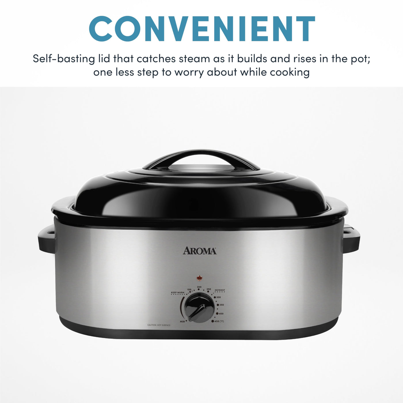 Aroma 22Qt. Roaster Oven With Self Basting Lid Stainless Steel