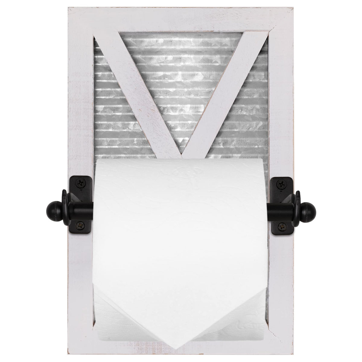 Autumn Alley White Farmhouse Toilet Paper Holder - Farmhouse Bathroom Decorative Accessories Country - White Washed Wood, Corrug