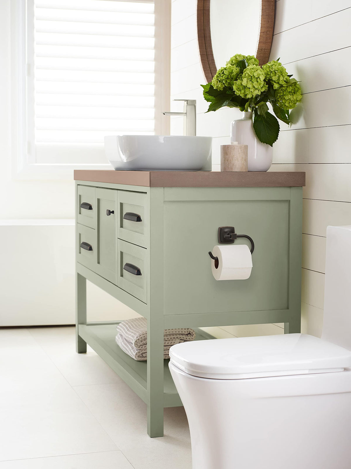 - Q: What is the design style of the Amerock BH36091ORB Toilet Paper Holder? A: The design style of the Amerock BH36091ORB Toilet Paper Holder is classic and bold, featuring timeless appeal.