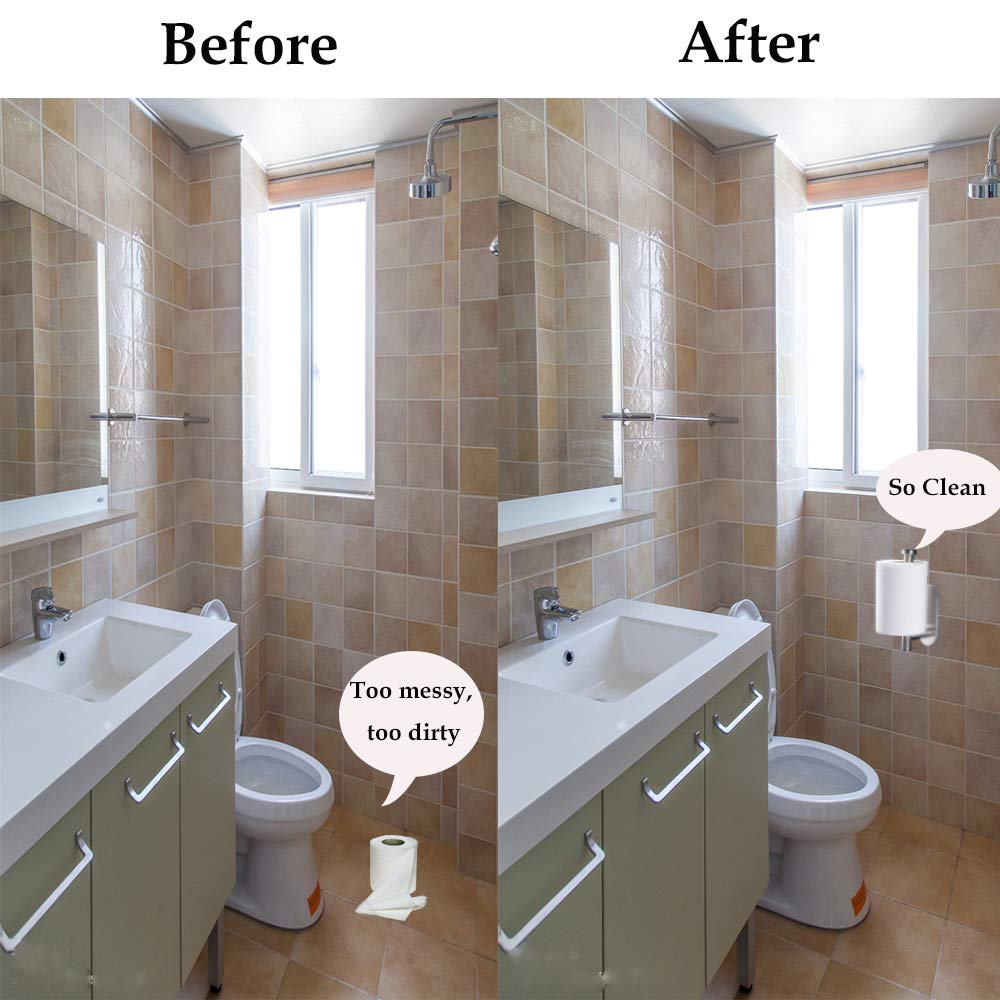 • Q: How does the installation process work for this toilet paper holder? A: To install, first dry the wall, then tear open the 3M adhesive glue, and attach the holder to your chosen position. Ensure the surface is clean for optimal adhesion.