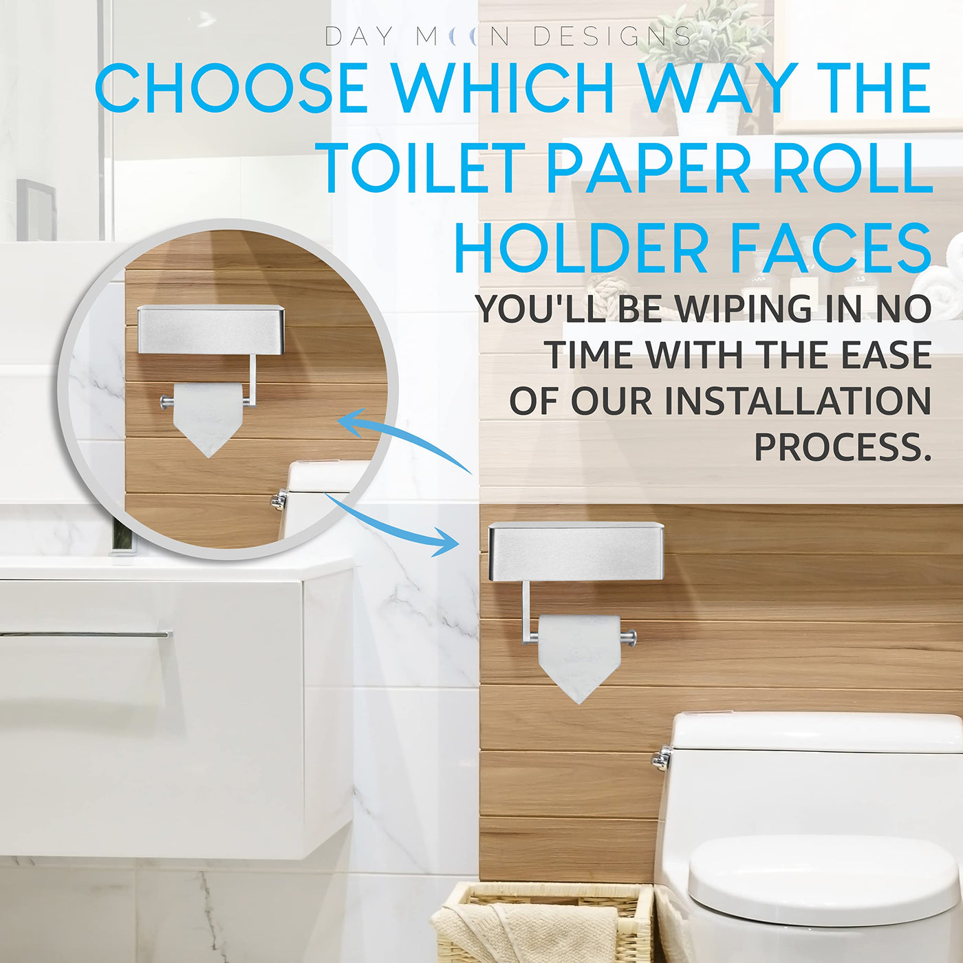 Day Moon Designs Toilet Paper Holder with Shelf Flushable Wipes Dispenser & Storage Fits Any Bathroom Keep Your Wet Wipes Hidden Stainless Steel Wall Mount Bathroom Organizer Brushed Nickel Large