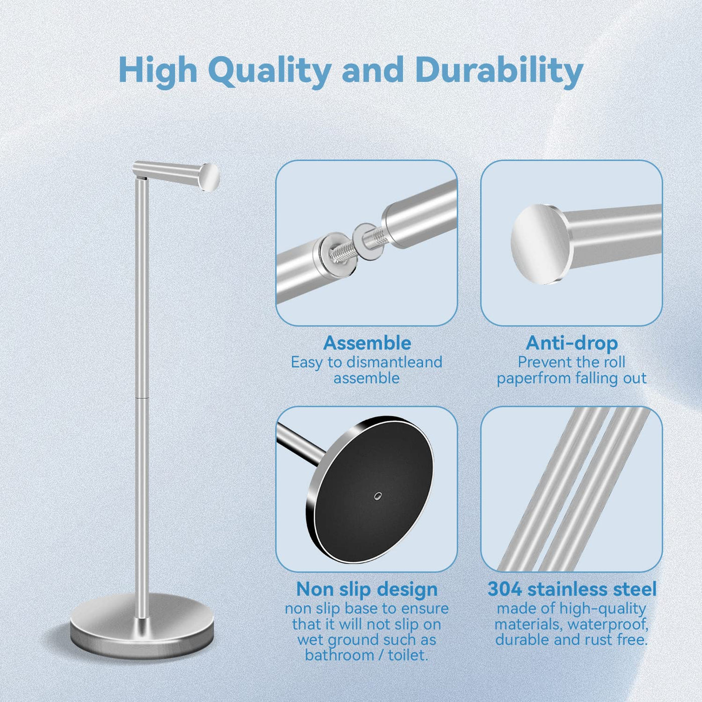 • Q: Does this holder save space in the bathroom? A: Yes, this freestanding toilet paper holder helps free up cabinet space while keeping toilet paper accessible.